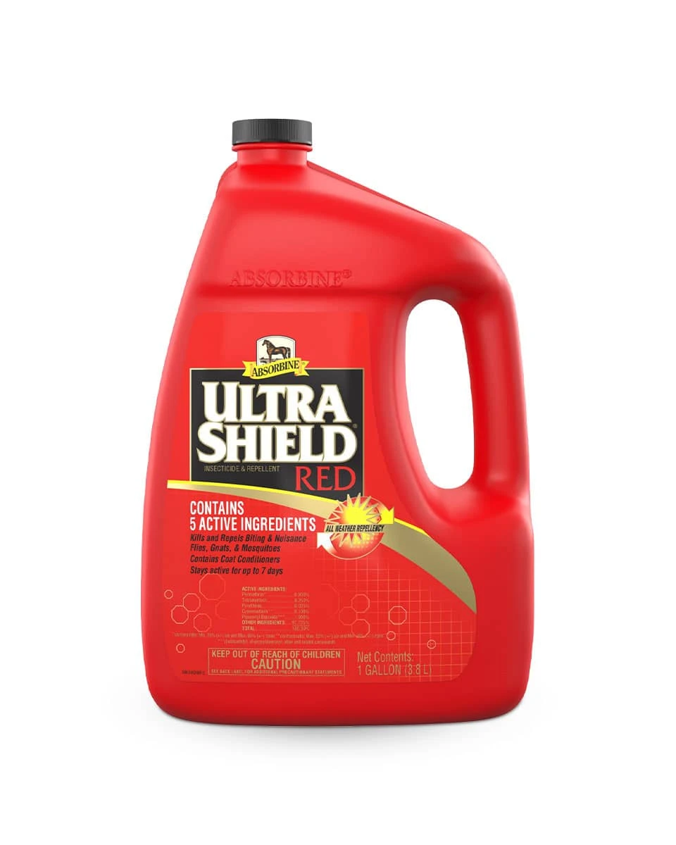 Absorbine’s UltraShield Red is a broad spectrum insect repellent designed to deter pests before they bite. Utilizing five different active ingredients, UltraShield Red kills a wide array of irritating or dangerous insects, from the common flies and ticks to no-see-ums and chiggers. In addition, when used as a premise spray, UltraShield Red can also take down four separate types of roach and carpenter ants. UltraShield Red leaves your horse protected from pests with an oil-free shine.