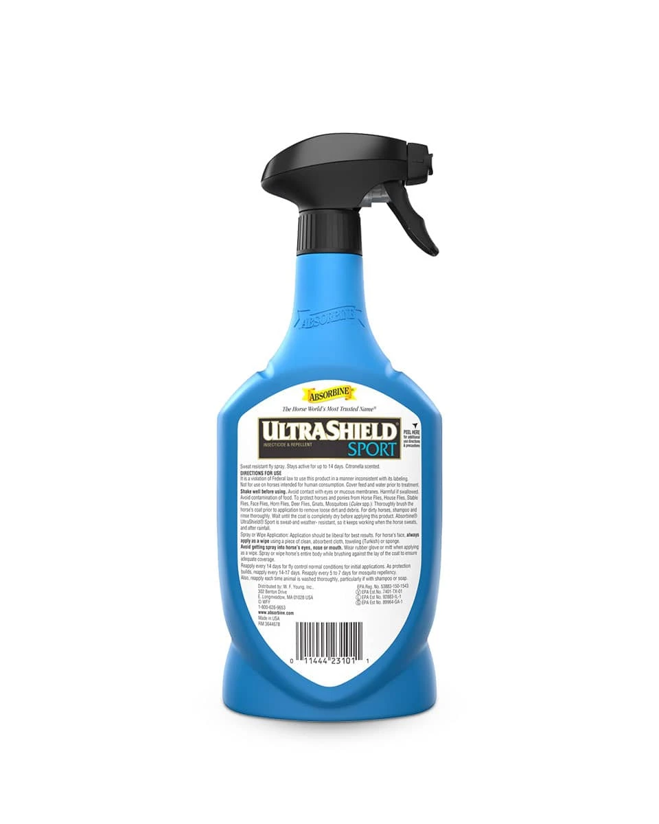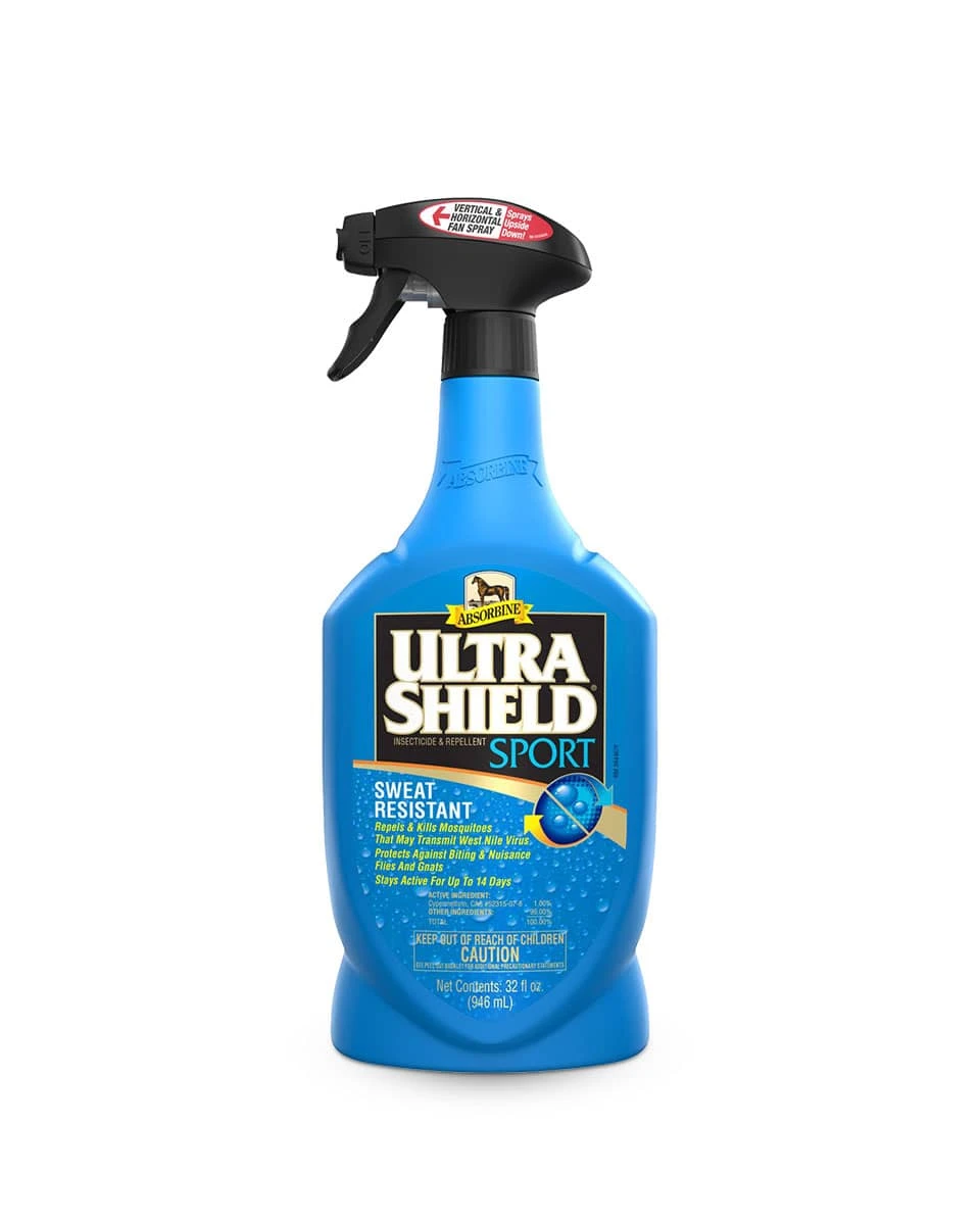 Absorbine’s UltraShield Sport was designed for the hottest and most humid conditions. UltraShield Sport works just as hard as your horse does and will work even when your horse sweats the most. This long-lasting and durable fly spray lasts up to 14 days no matter the weather.