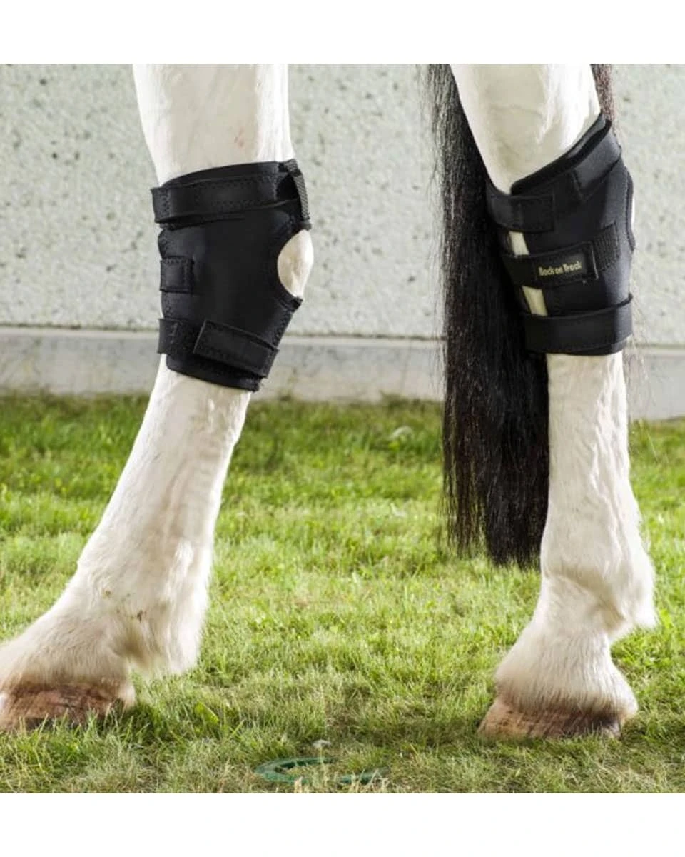 Back on Track Hock Wraps aid in recovery and injury prevention, particularly in horses who are susceptible to arthritis and capped hocks. Made of a breathable neoprene layer and Welltex fabric, hock wraps provide ceramic therapy to the surrounding joint and ligaments by utilizing the horse’s own body heat, creating a soothing warmth and increasing blood flow.