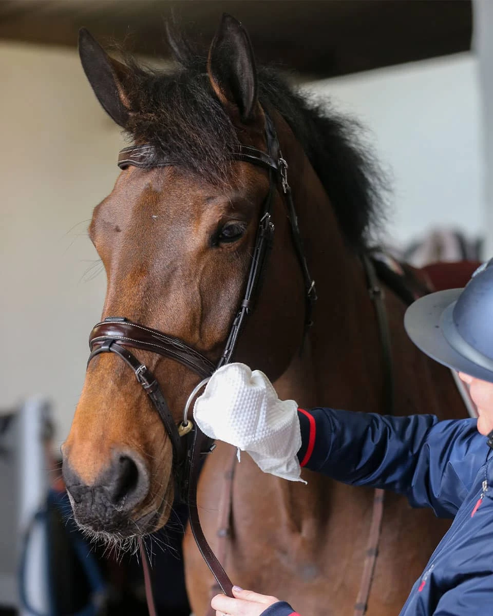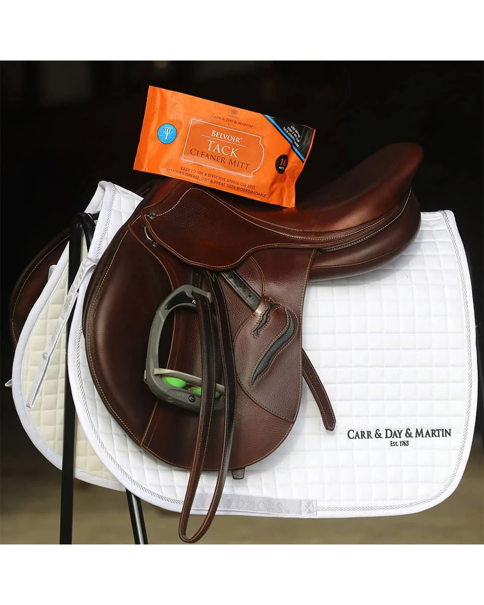 The Tack Cleaner Mitts from Belvoir are a 100% biodegradable, environmentally friendly way to clean your horse’s tack when you’re on the road or short on time. These mitts require no extra water and are tough on grease, dirt, and sweat but gentle enough to be used directly on your leather goods. The compact packaging contains 10 mitts, fits easily into a small grooming bag or tote, and they are an easy way to keep your leather clean and orderly. Use them by themselves or in combination with your favorite Belvoir conditioner.