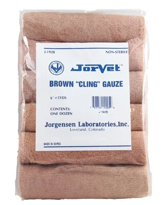 A must for every medicine cabinet. Brown Cling Gauze Wrap can be used on horse’s legs or if your dog or cat has an injury on its leg or the tail. The wrap is not stretchy, which makes it great for holding a or other bandage in place without cutting off circulation. There are 12 wraps to a pack.