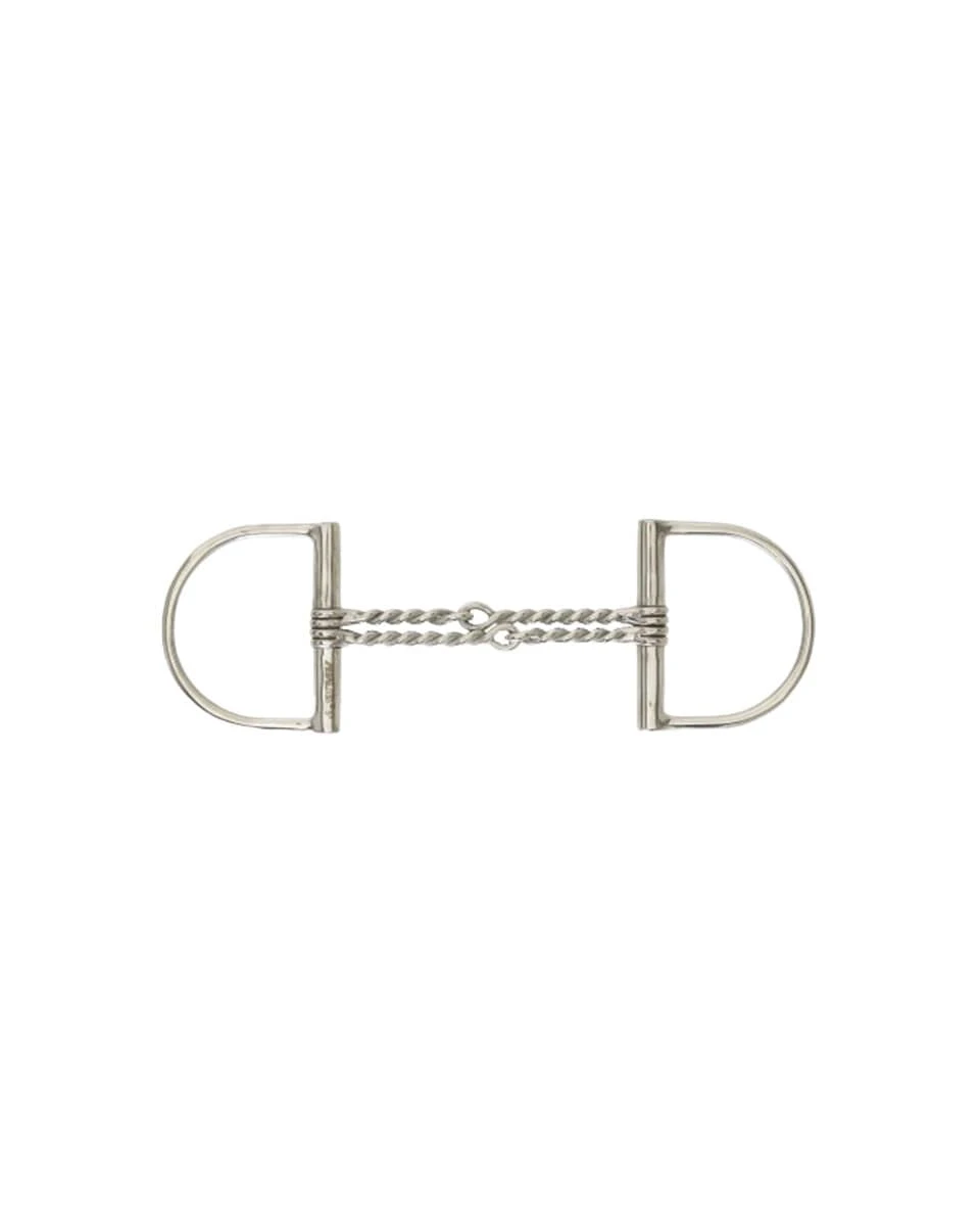 The King Dee Double Twisted Wire Bit from Centaur has a mouthpiece made of two twisted stainless steel wires which are hand polished and balanced to give you and your horse the most comfortable ride. This bit can create moderate to heavy pressure, and we recommend its use under the guidance of an experienced trainer. All Centaur stainless steel bits come with a lifetime guarantee against rust.