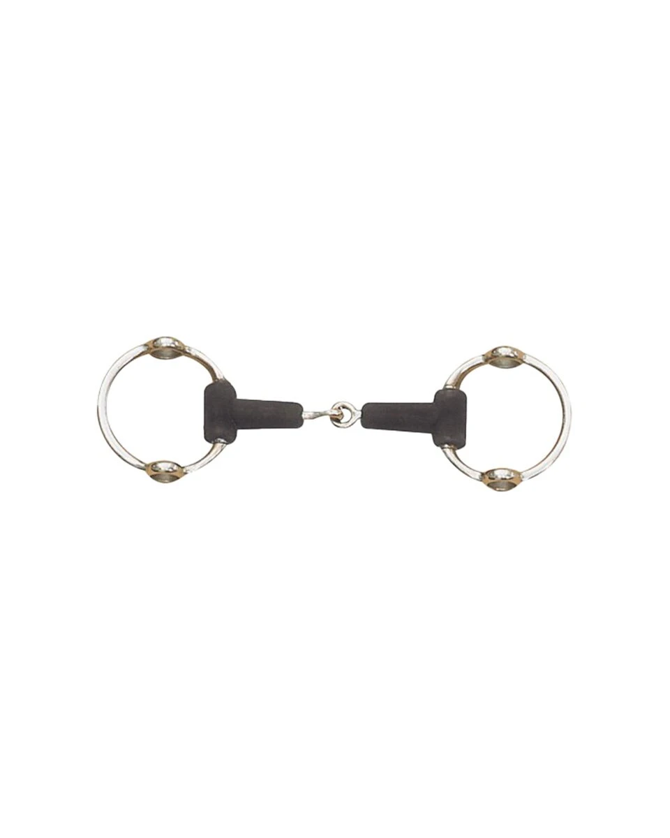 The Rubber Mouth Eggbutt Gag Bit from Centaur is a cheltenham gag with a soft rubber coating to keep your horse feeling comfortable during your ride. This bit is single-jointed and cheltenham gag bits are great for horses who need to raise their headset. The reins can be connected to the ring on the gag cheekpieces (sold separately) that run through the bit. Pulling on the rein lifts the bit into the horse’s lips and encourages them to lift their head. Due to the pressure, this bit can exert, we recommend it’s used under the guidance of a trained professional.