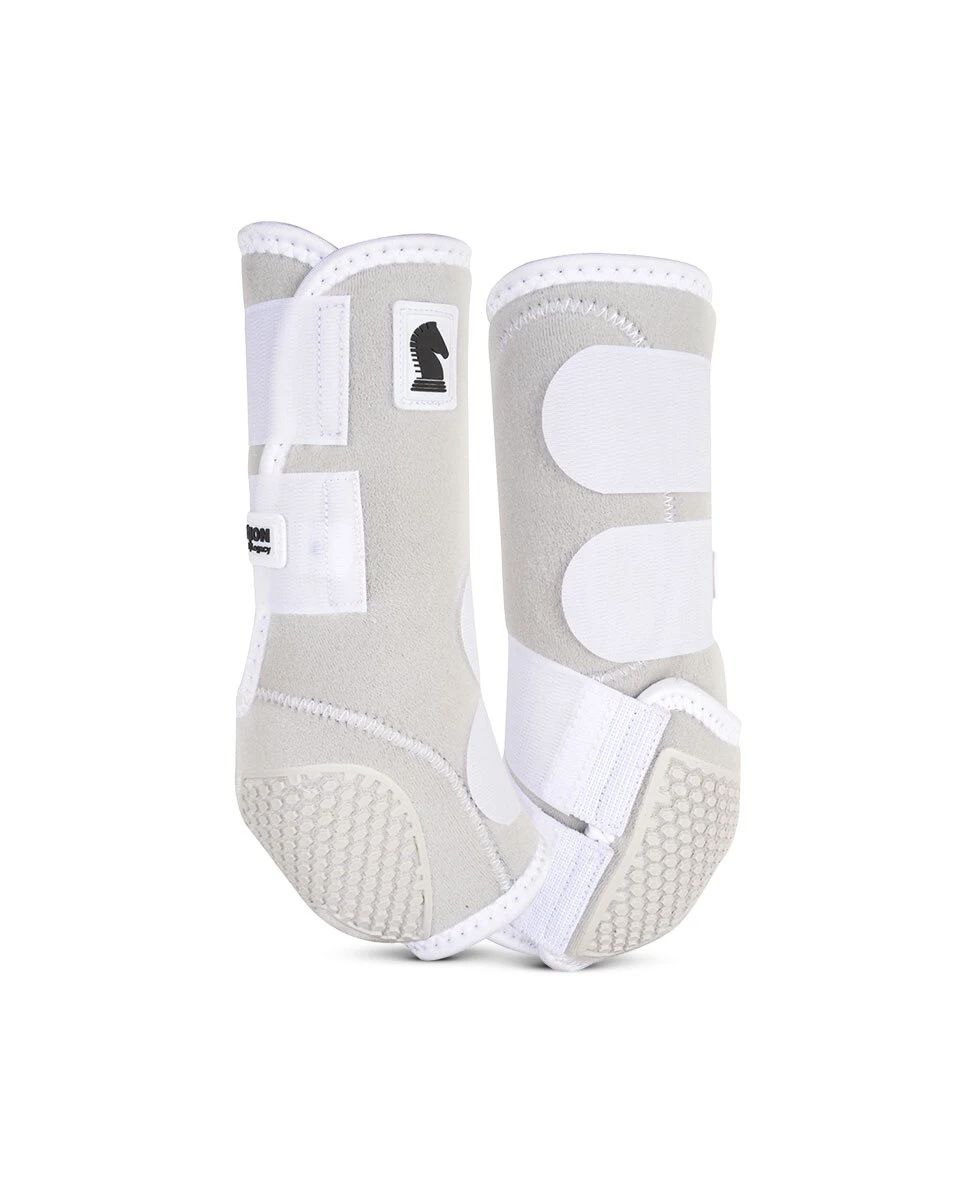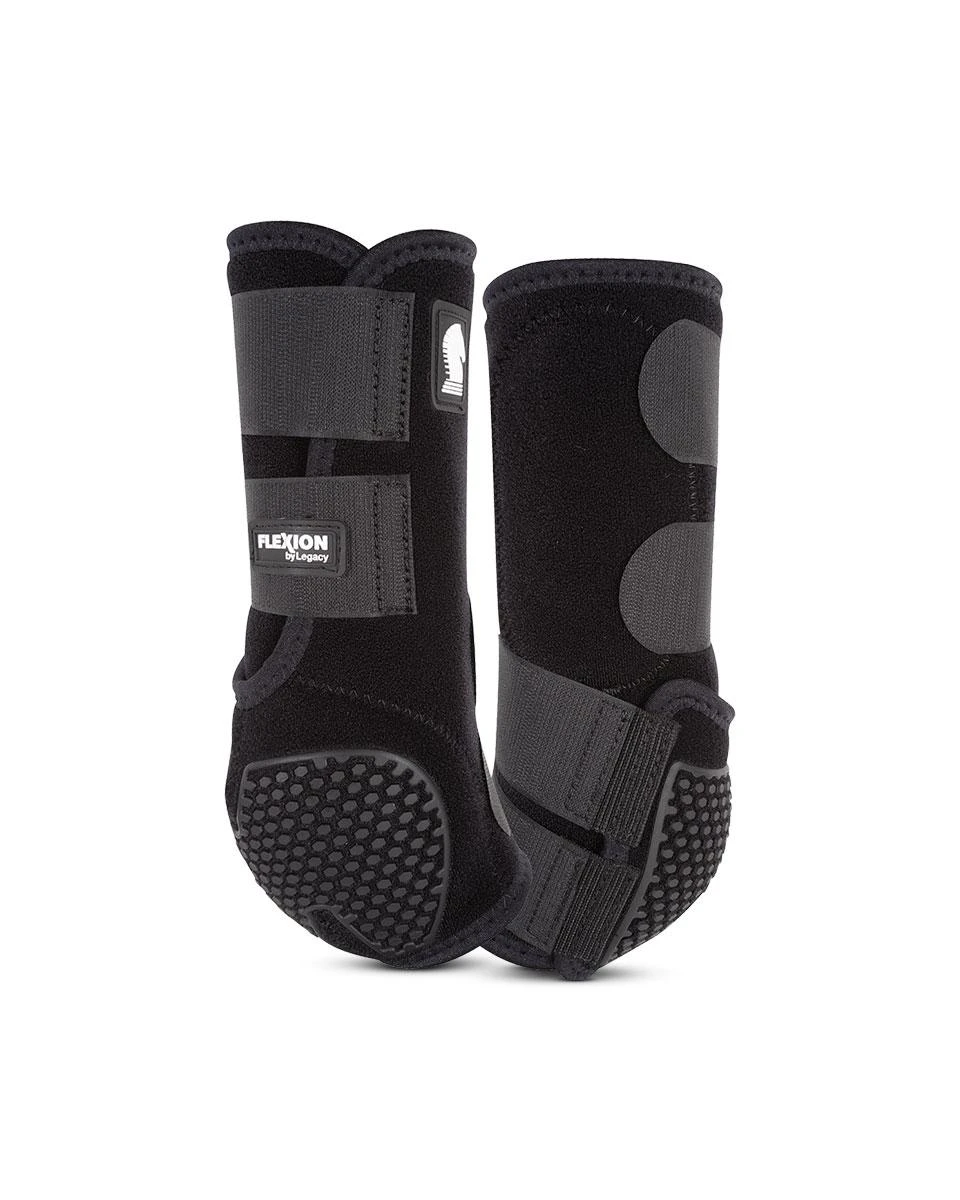Classic Equine Flexion by Legacy Hind Boots are breathable neoprene boots to protect your horse’s hind legs. These 100% virgin neoprene boots have hook and loop closures and a Fetlock Cradle System to ensure the perfect fit. This design provides suspensory support and protection of all structures without obstructing performance or mobility. These boots are a great choice for any equestrian sport.