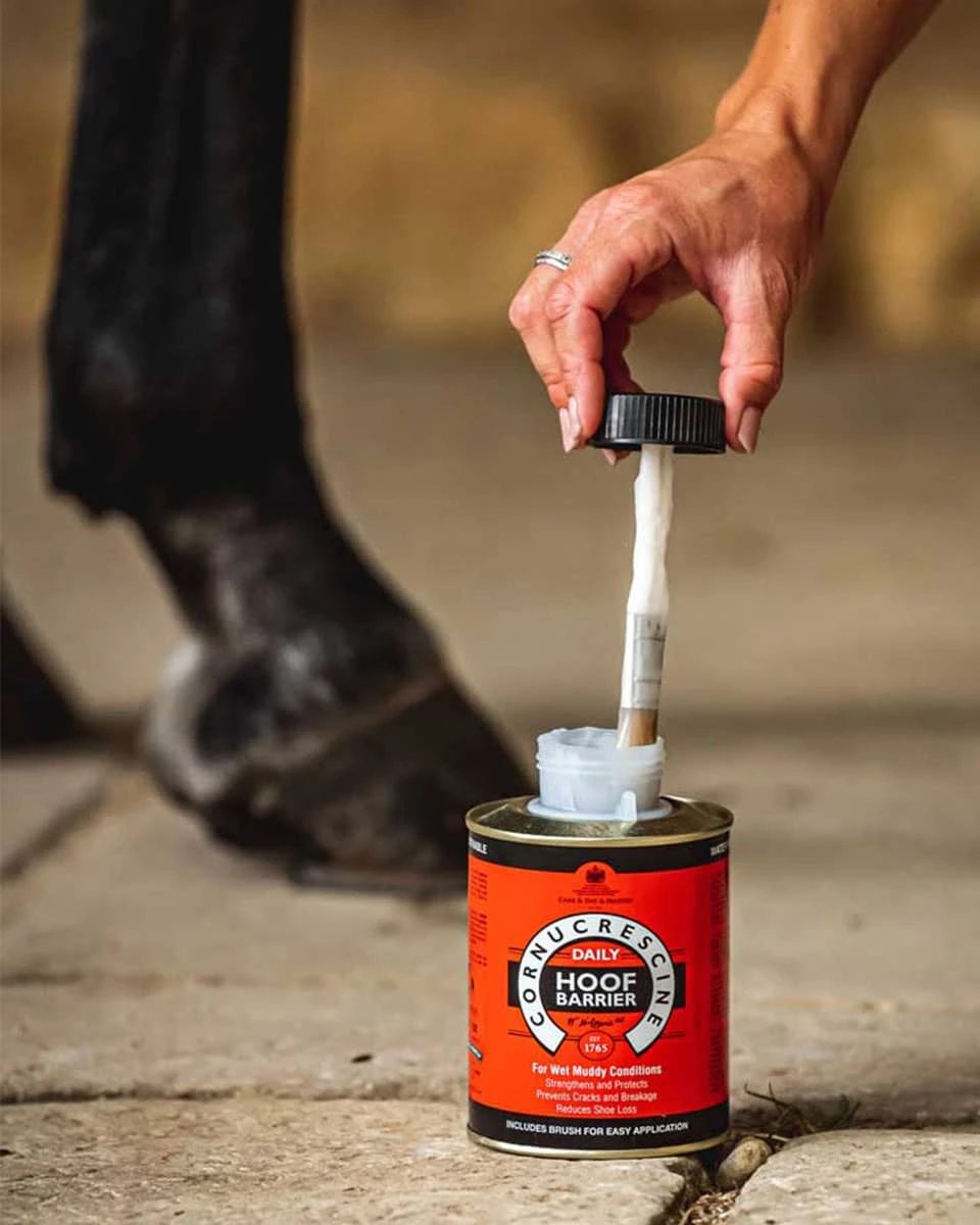 Cornucrescine Daily Hoof Barrier from Carr & Day & Martin is a one-way barrier to protect from excessive absorption of water and urine on your horse’s hooves. This daily hoof barrier waterproofs the hoof while allowing it to still naturally breathe. This oil is best for horses with soft and crumby hooves. It is also great to add to your bathing bucket to help prevent the cracking of hooves.