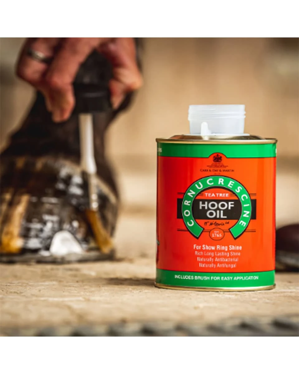 Cornucrescine Tea Tree Hoof Oil by Carr & Day & Martin is a modern alternative to traditional style oil while still protecting the hoof and leaving a show ring shine on any color hoof.
