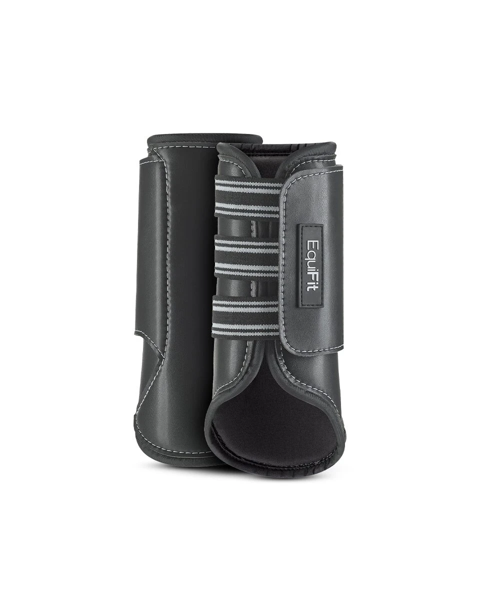 MultiTeq Front Boots from EquiFit offer all around protection for your horse’s daily use, whether it’s exercise or turnout. ImpacTeq technology provides shock absorption and protection, while the EverLeather shell resists scratching, tearing, and puncturing. These boots look sharp and stay securely in place with three wide elastic straps and double locking closures.