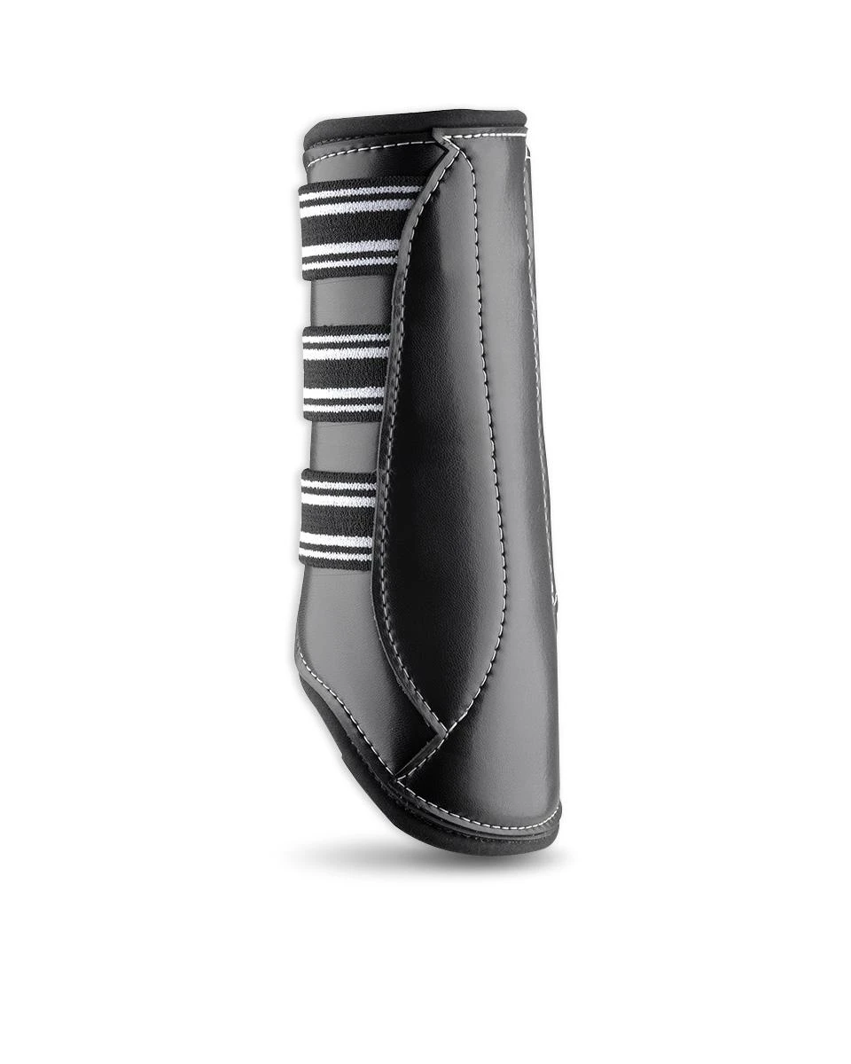 MultiTeq Hind Boots from EquiFit offer all around protection for your horse’s daily use, whether it’s exercise or turnout. ImpacTeq technology provides shock absorption and protection, while the EverLeather shell resists scratching, tearing, and puncturing. These boots look sharp and stay securely in place with three wide elastic straps and double locking closures. The tall height provides extended lower leg coverage and protection.