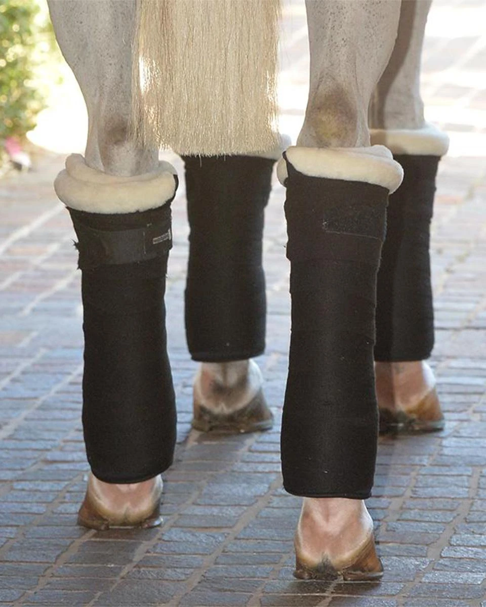 EquiFit Sheepswool T-Foam Standing Wraps help support your horse’s legs and encourage faster recovery after a hard workout. The breathable T-Foam core conforms to the horse’s leg and absorbs shock and vibration. Soft SheepsWool helps remove heat from the legs and is hypoallergenic, odor resistant, and breathable. These wraps are perfect for hard workouts or competition days, and help reduce edema, swelling, and wind puffs. Use with standing or track bandages to keep securely fastened on the horse’s legs.