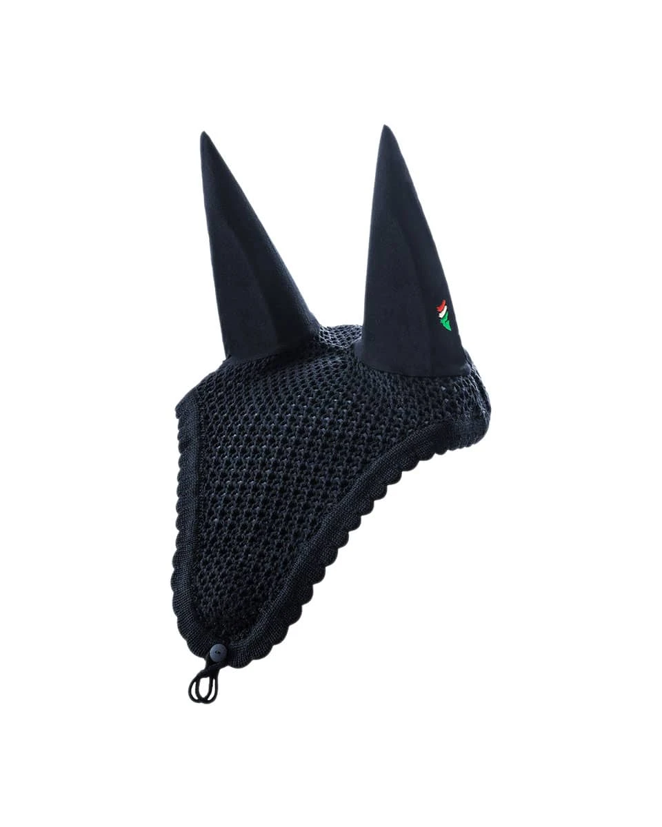 The Loop Tie Down Ear Bonnet by Equline is made to provide your horse with fly protection and style for the show ring. This bonnet features a knit design, an Equiline logo, and a tie-down design that helps maintain a sophisticated look while in the ring.