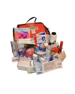 EquiMedic USA Soft-Sided Small Triple-Section Medical Bag, Alcohol Wipes, Sanitizing Wipes, Povidone Iodine Swabsticks, Bloodstop Powder, Eye Wash, Flashlight, Small, Medium & Large Sterile Dressings, Non-Sterile Dressings, Non-Adherent Dressings, Exam Gloves, Hoof Pick, Long Wooden Handled Cotton Tipped Applicators, Tourniquet, Medical Towels, 4” & 6” Cohesive Tape Rolls, Wood Applicators, ¾” Self-Adhesive Bandages, 1” Self-Adhesive, Bandage Scissors, Betadine Surgical Scrubs, Antiseptic Ointment, Cotton Roll, Hydrogen Peroxide, Liniment, Thumb Forceps, Wrap Cutter, Iodine Wipes, Epsom Salts, Rolled White & Brown Gauzes, Microbial & Germicidal Wipes, 2” Elastic Adhesive Tape Rolls, Betadine Solution, Alcohol, Bandage Pins, Digital Thermometer, Triple Antibiotic, 3cc, 6cc, 10cc, 20cc & 30cc Syringes, 18g X 1”, 20g X 1”, 18g X 1.5” & 20g X 1.5” Hypodermic Needles.