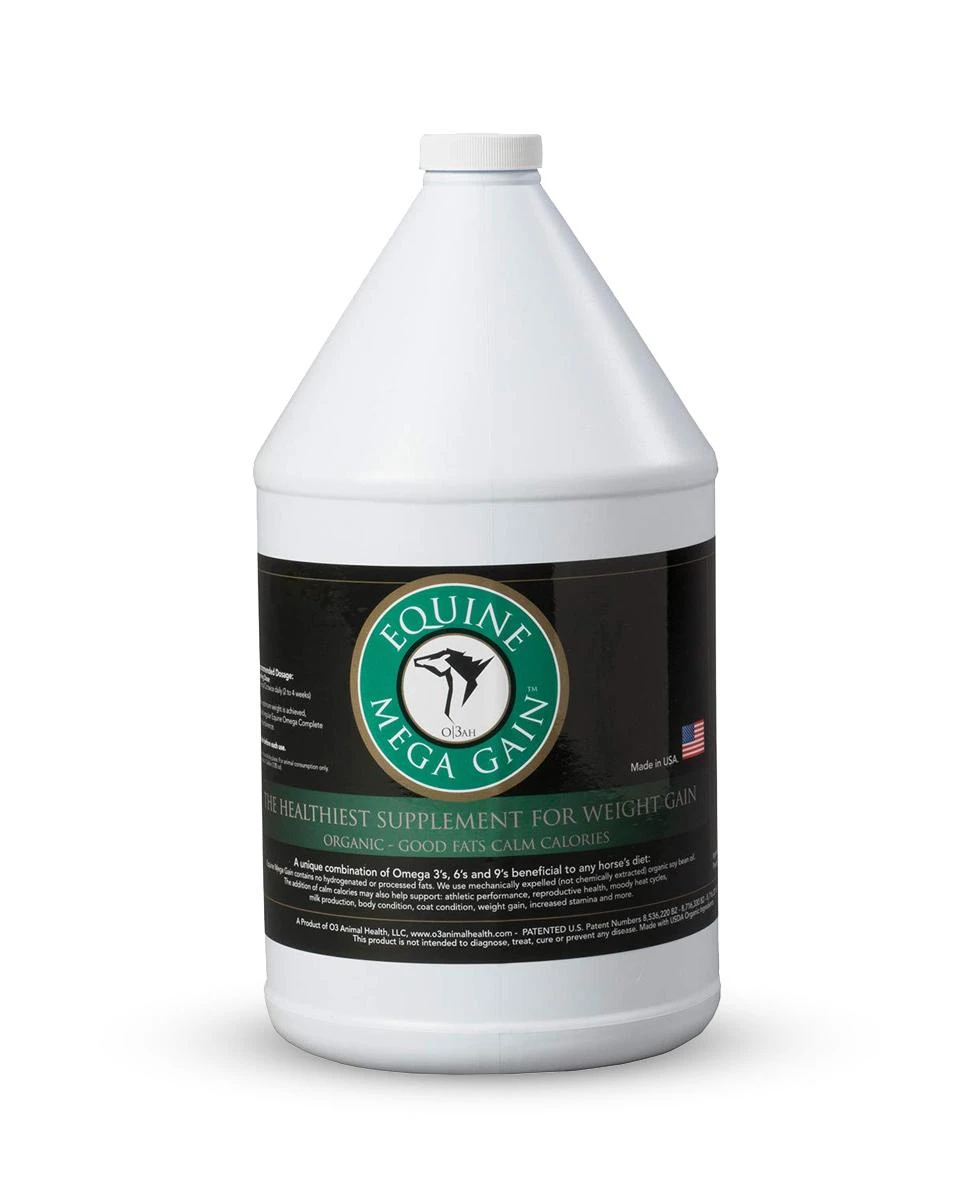 Equine Mega Gain from O3 Animal Health is a specifically formulated version of Equine Omega Complete that is geared towards providing your horse with good fats and calm calories that will not make your horse hot. The balance between Omega 3’s, 6’s, and 9’s is ideal for your horse’s diet!