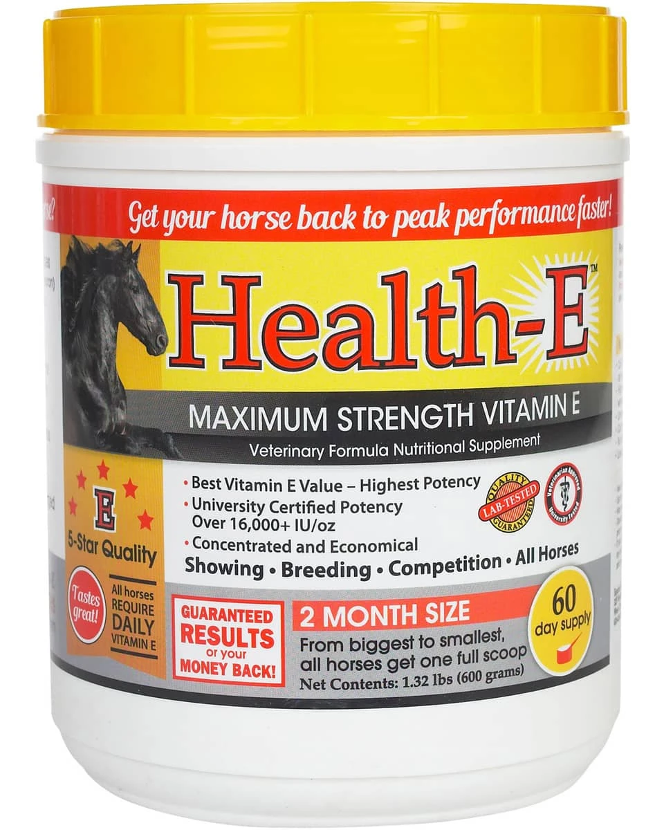 Health-E Maximum Strength Vitamin E Supplement is the highest strength Vitamin E supplement with all eight forms of Vitamin E recommended by veterinarians for all horses.