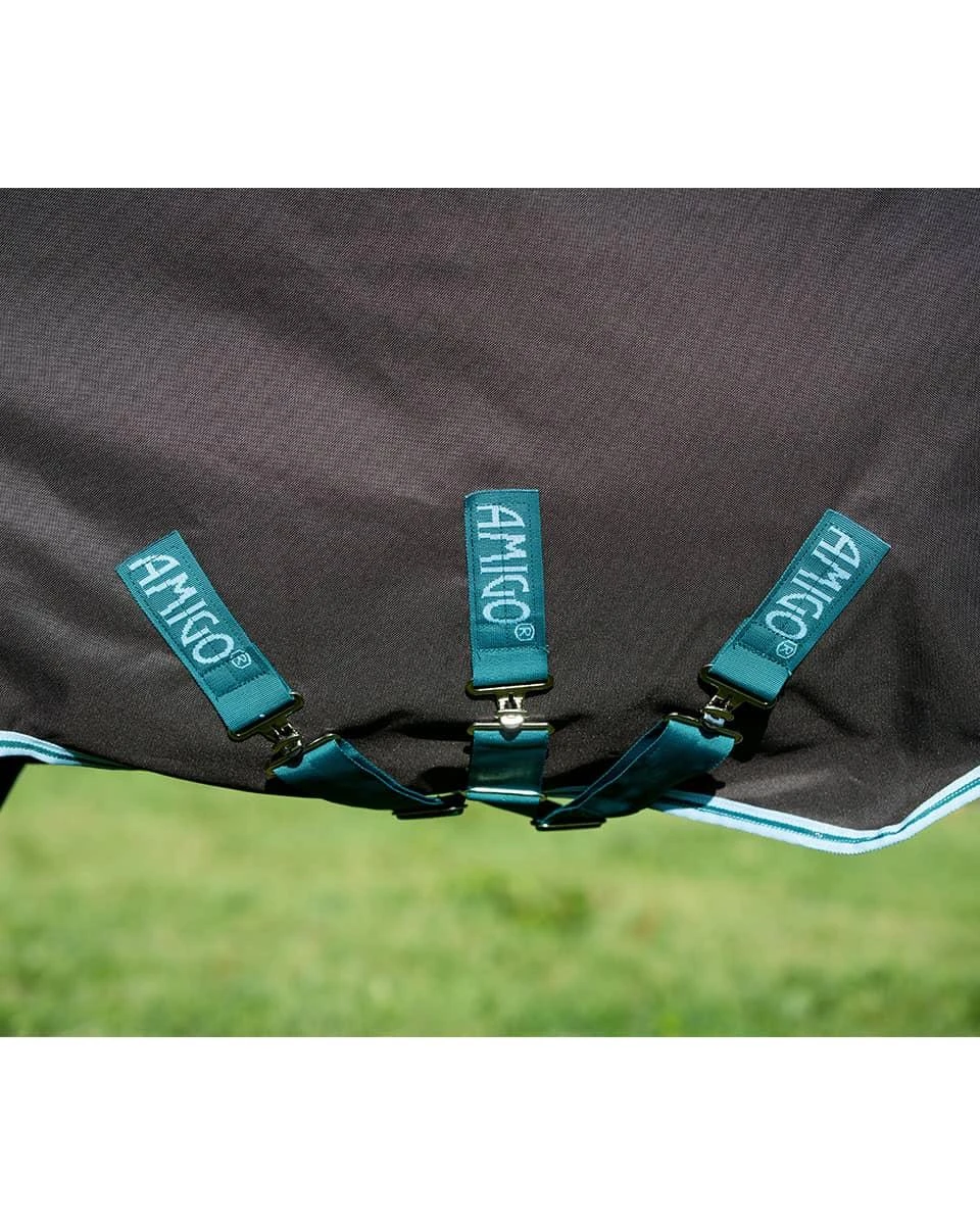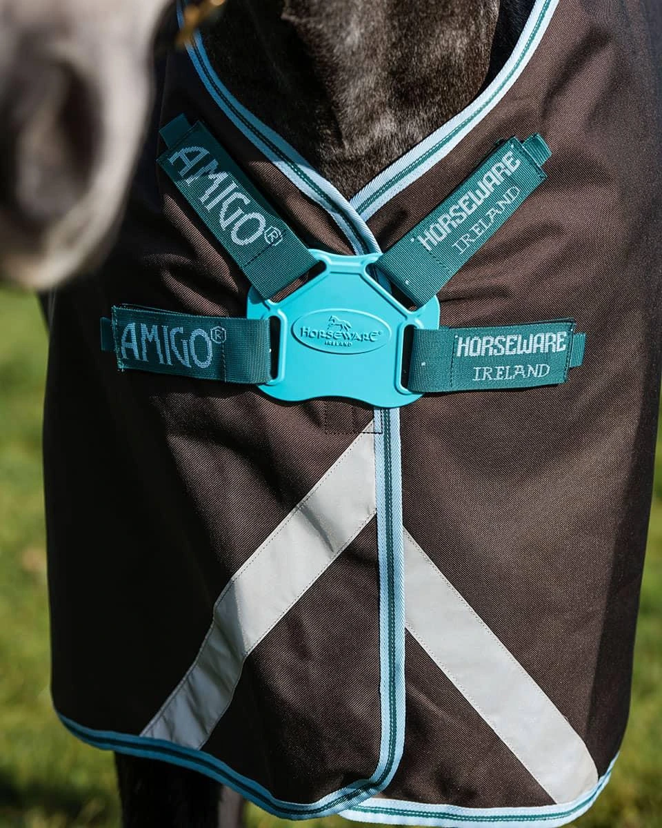 The Amigo Bravo 12 Plus Turnout Medium Weight with Front Disc Closure from Horseware Ireland is a 250gm horse blanket that will keep your horse warm, dry, and comfortable during winter turnout. The blanket is waterproof and breathable, and the fabric has added features such as antimicrobial and anti-static properties offering your horse ultimate comfort. Leg arches offer maximum space for movement while your horse plays outside. This blanket is compatible with the Horseware liner system, so you can adjust it as needed for changing temperatures.
