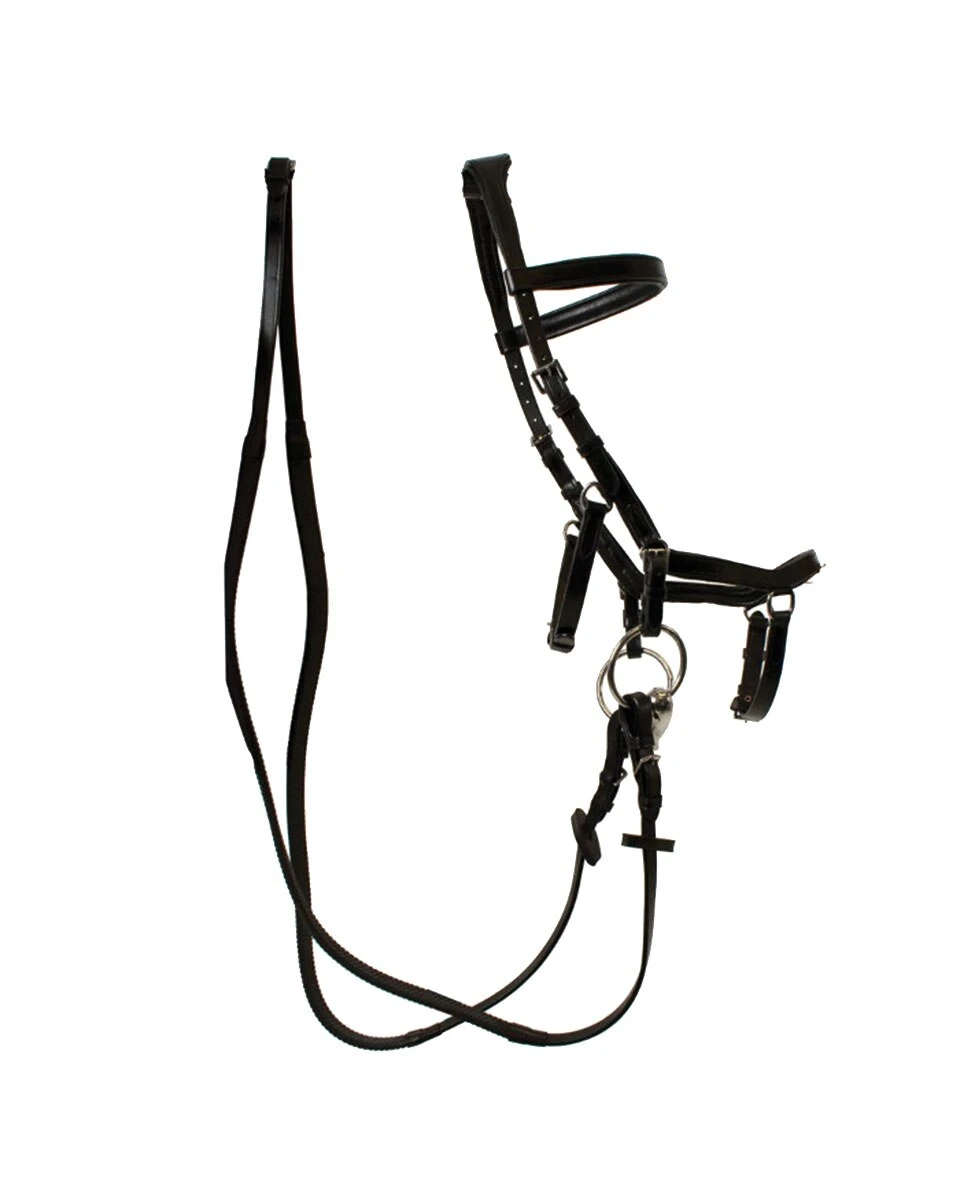 The Micklem Bridle is made from hand-finished leather and padded along the headpiece, noseband, browband, and cheekpieces for extra comfort. Two bit strap sets, tongue-protection bit clips, and matching rubber reins included.