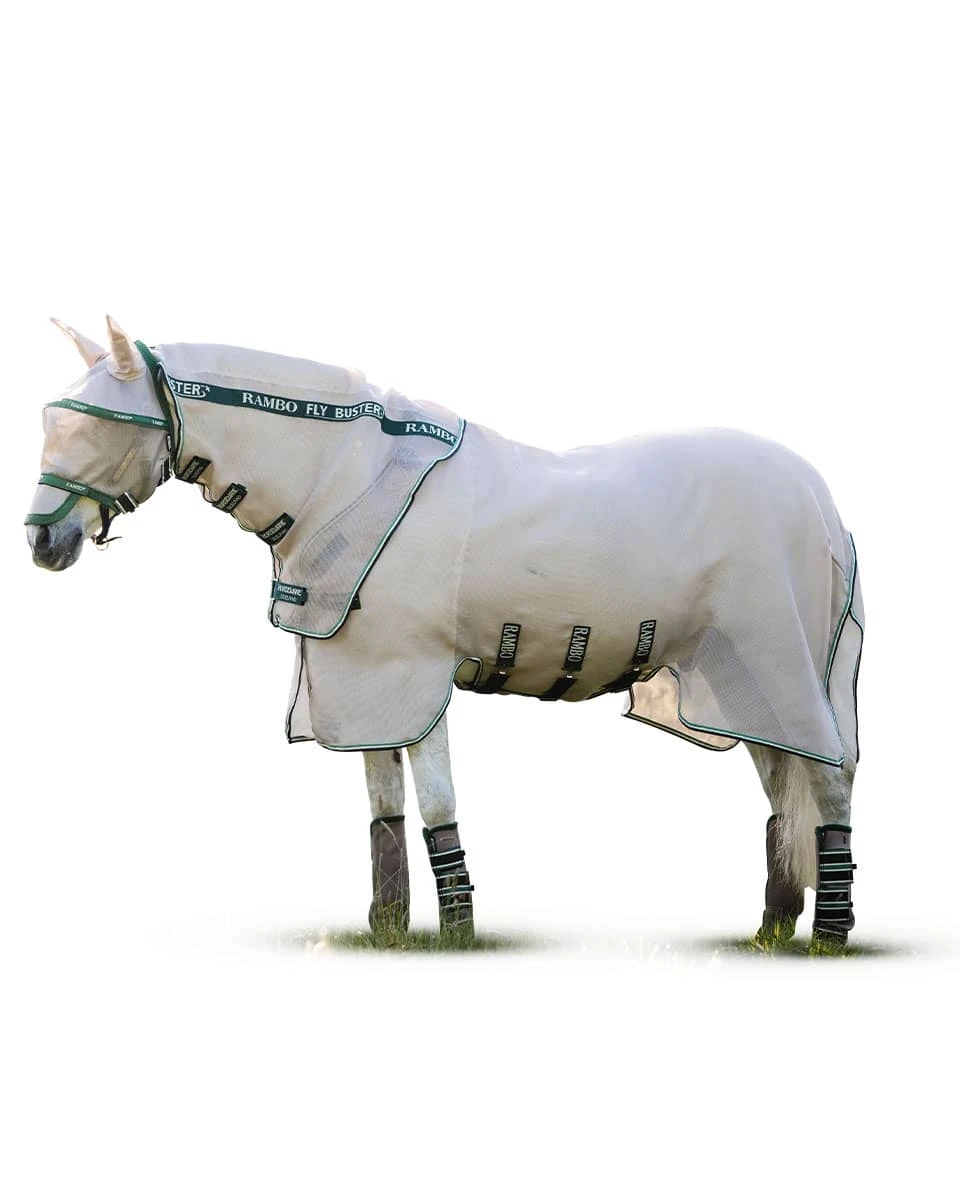 Keep your horse protected from pests with a Rambo Fly Buster Vamoose with No Fly Zone from Horseware Ireland. The ultra-breathable soft mesh is strong enough to withstand pasture play while allowing your horse quiet time outdoors during insect-infested times of the year. Neck cover with mane liner included.