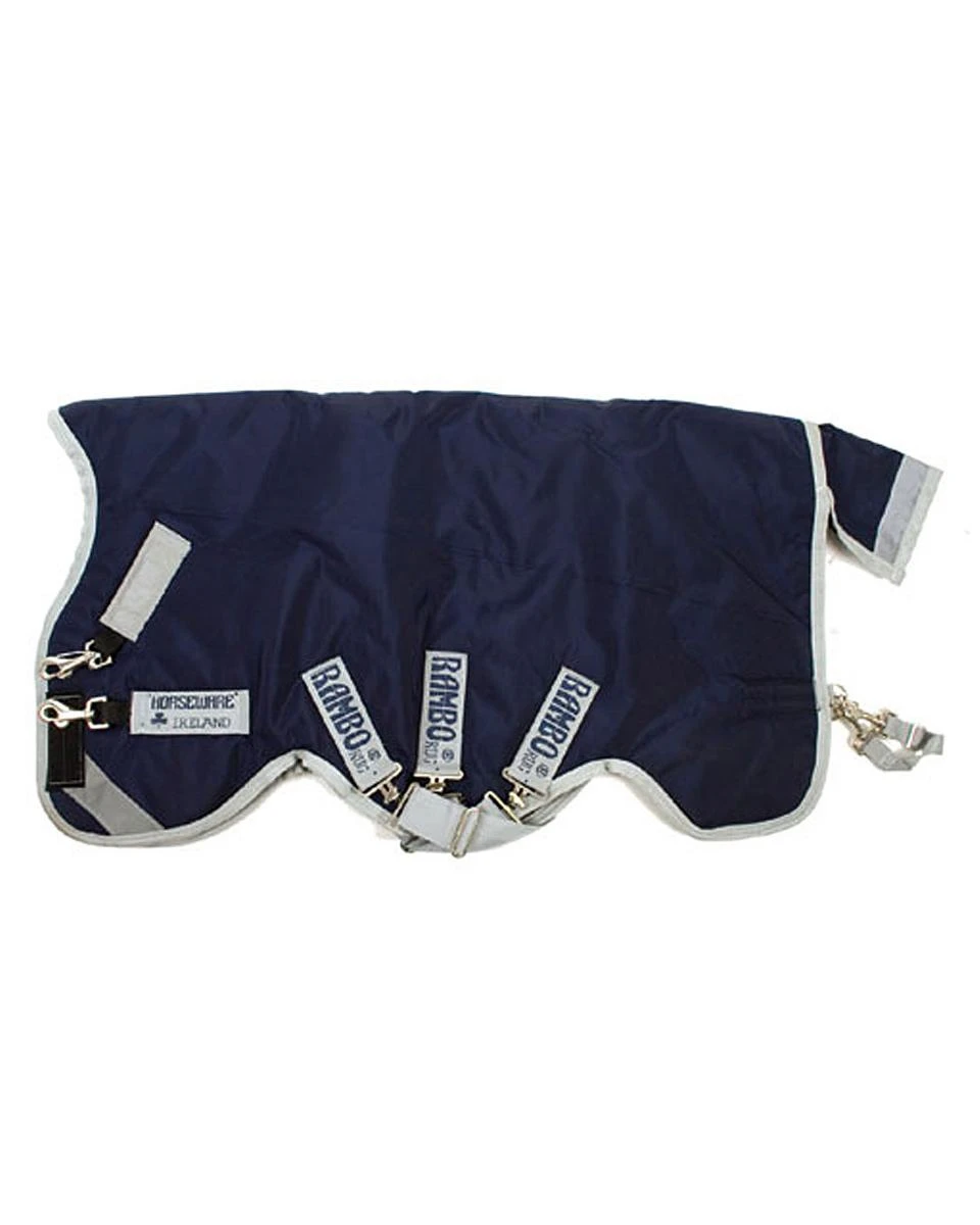 The Rambo Original Turnout with Leg Arches incorporates the classic elements of Horseware Ireland’s most popular blanket with updated features. With a 1000 Denier ballistic nylon outer shell, this durable medium-weight blanket is built to last. Waterproof, breathable, and made with an antibacterial lining and 200 grams of fiberfill, your horse will stay dry and warm no matter the weather. New V-front closure and leg arches provide better freedom of movement, while reflective strips increase nighttime visibility.
