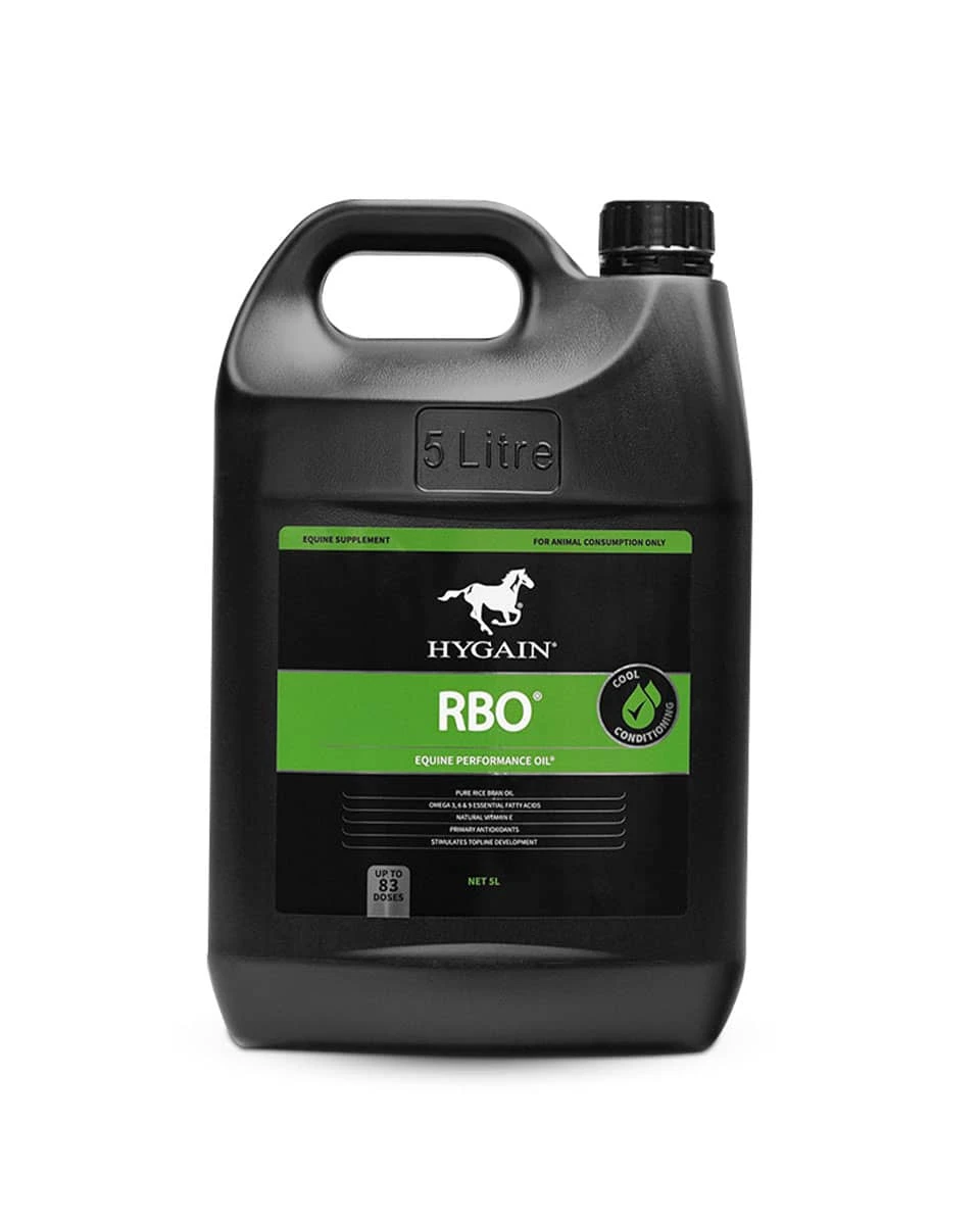 Hygain RBO (Rice Bran Oil) Equine Performance Oil helps you increase the fat intake and calories in your horse’s diet. This supplement contains a blend of pure rice bran oil, Omega fatty acids, and natural antioxidants. Together, these ingredients increase the energy content of their diet without increasing their excitability. It also increases oxidative capacity, making this a great option for performance horses. Hygain fully refines the oil to enhance palatability while protecting the integrity of the nutrients. Hygain RBO is good for tough keepers and horses that need to gain weight, performance or endurance horses, and any horses prone to tying up or getting stomach ulcers.