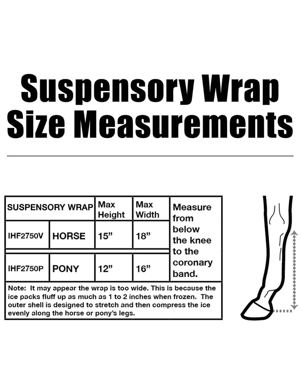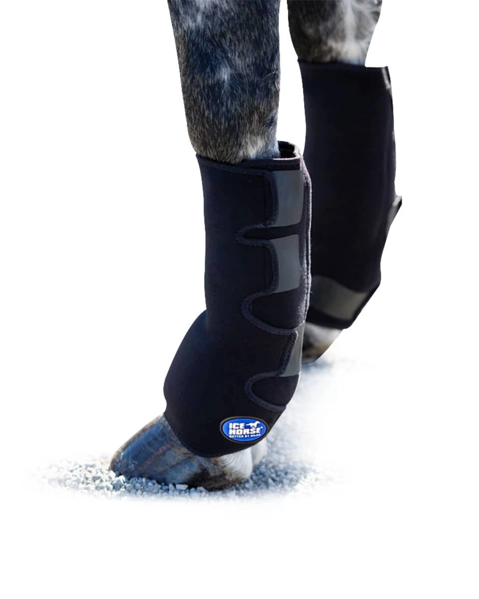Ice Horse Suspensory Wraps by MacKinnon Ice Horse were developed to provide cooling ability from below the knee to the pastern fetlock area of the horse leg. These boots feature Quadraspan anti-migration fabric that keeps the wraps in place without having to yank or pull on the affected area. Suitable for Eventing, Endurance, and Dressage performance horses post-schooling activity or other showing activities.