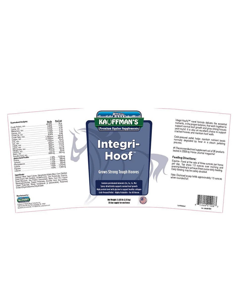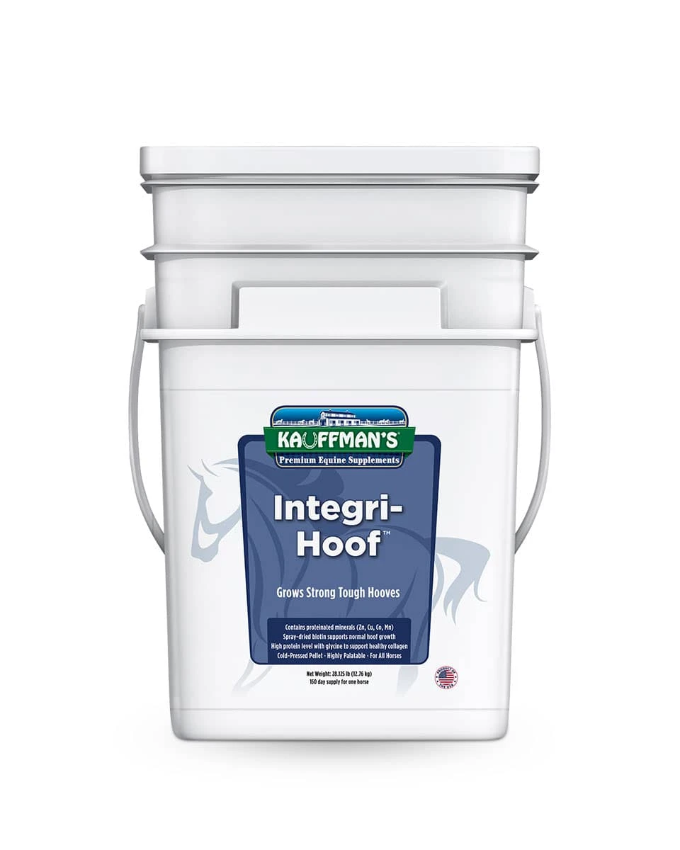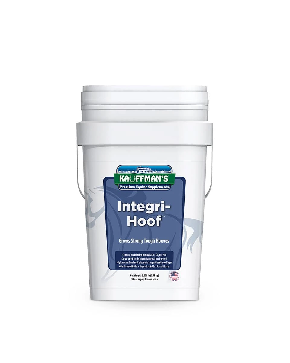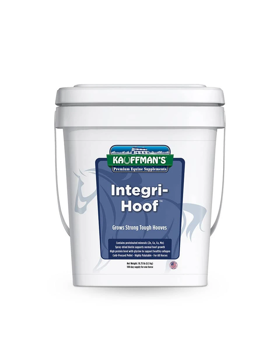 KAUFFMAN’S Integri-Hoof is a protein, vitamin, mineral and amino acid supplement designed to help support your horse’s hooves. This premium, pelleted formula combines proven ingredients like biotin, methionine, and lysine. Integri-Hoof has also been balanced for micro-minerals like copper, zinc with minimal interference from iron and manganese. The yeast culture component improves the digestibility and efficiency of these micro and macro-minterals. These are an integral part of a healthy hoof, and therefore, an integral part of a healthy horse!