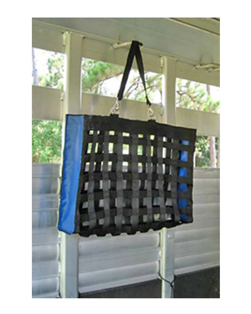 The NibbleNet “Picnic” is the same quality construction as the standard NibbleNet. The NibbleNet “Picnic” hay net is designed for smaller horses, ponies, minis, and short trailer rides. The net is 22” wide, 19” tall and 3” deep with 1.5” square holes in the webbing. This net will hold about 2-3lbs of hay.