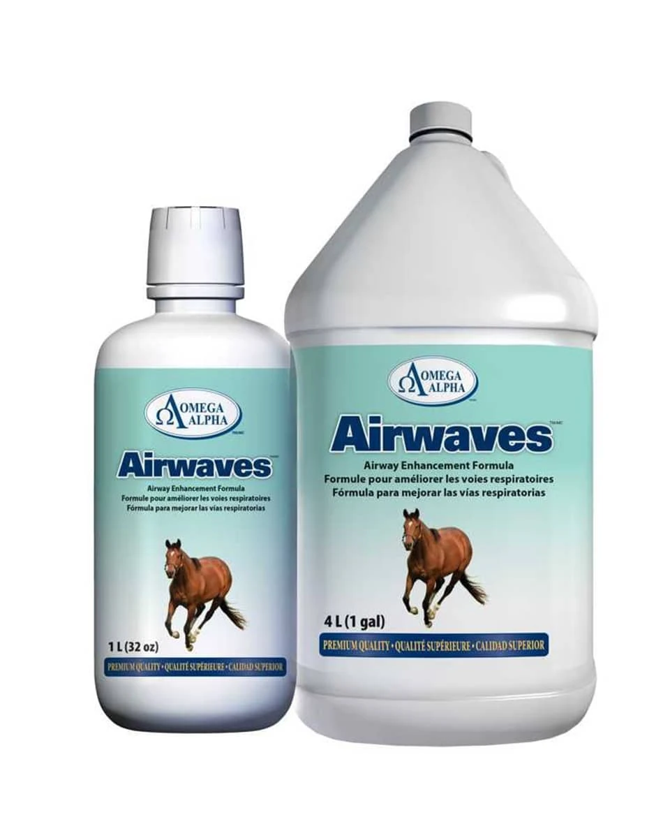 Airwaves from Omega Alpha is potent bronchodilator that helps to stimulate the opening of the airway and clear the airway of mucus. This product is formulated to relieve broncho-spasms and is a helpful cough suppressant. Along with the other key components, Airwaves helps to ease inflammation in the chest and helps to alleviate allergic symptoms. Effective for breeders or horses with heaves.