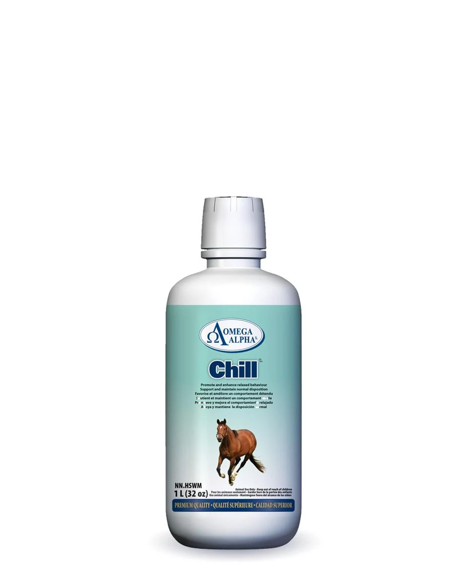 Chill from Omega Alpha is designed to calm excitable horses who typically experience pre-performance jitters. This product is formulated to calm and reduce anxiety and stress so your horse can focus on the task at hand. If your horse has difficulty with outside distractions, Chill can help maintain your horse’s levels of focus.