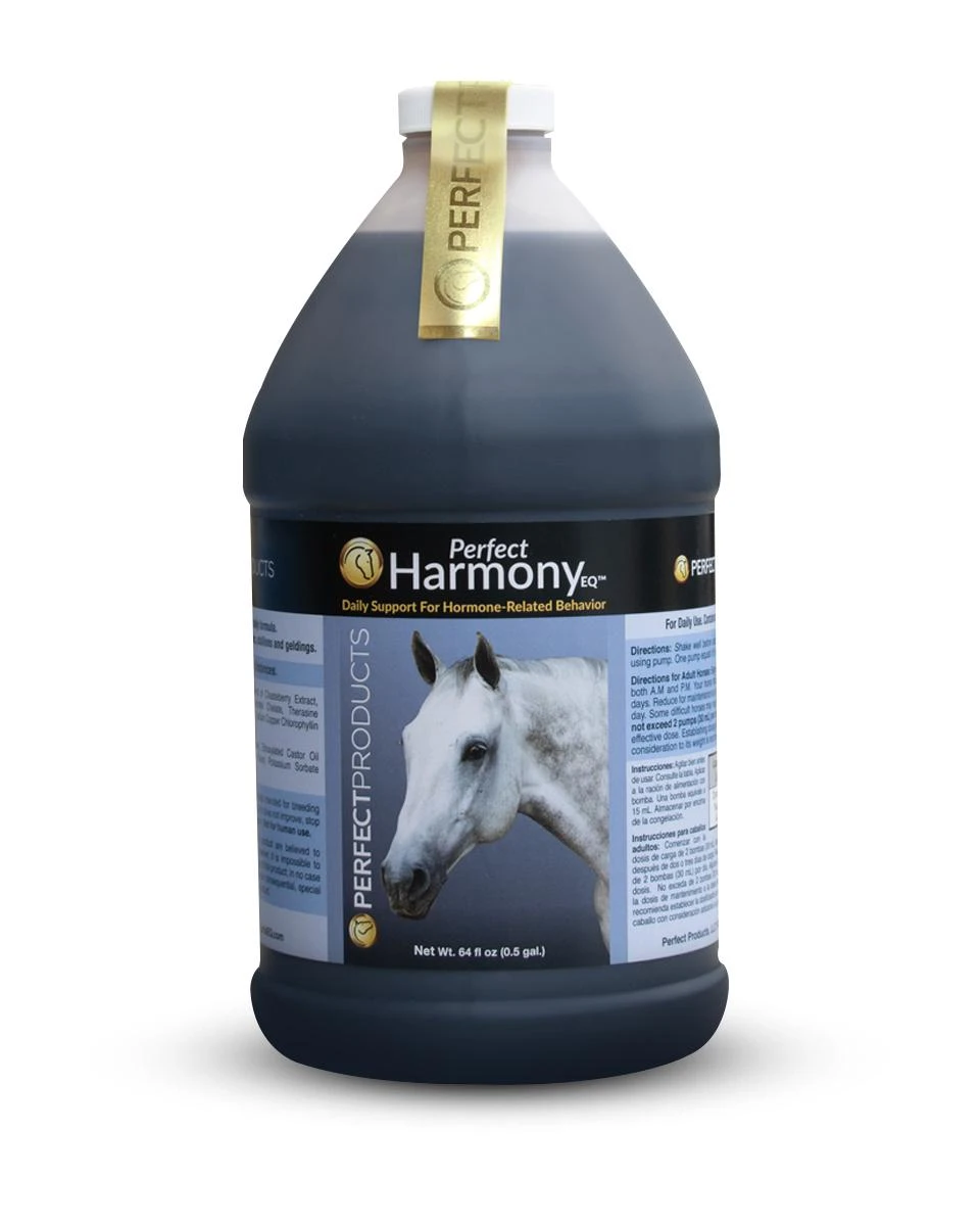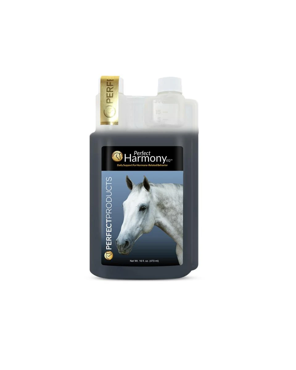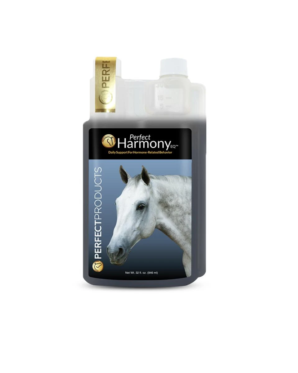 Perfect Harmony EQ from Perfect Products uses nutraceutical ingredients to naturally mimic the relaxing and behavior-related effects of Progesterone therapy. Hormone imbalance can negatively affect a horse’s behavior and performance. Perfect Harmony EQ supports balanced hormonal functions to help curtail hormone-related aggression, agitation, or sullenness. This quick-acting supplement may lead to improved behavior in as little as 2 days after the first dose and continues to strengthen with daily use.