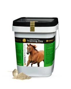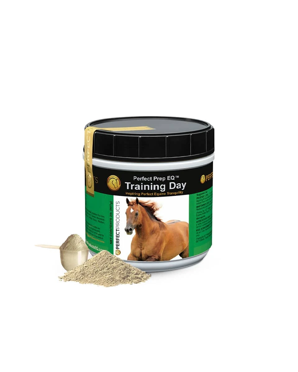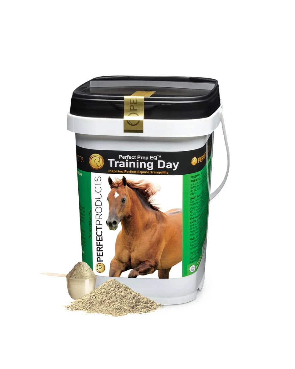 Perfect Prep EQ Training Day Powder from Perfect Products is a palatable powdered daily horse calmer. It acts to stabilize the horse’s blood sugar and work on the nervous and circulatory systems to produce a less nervous, more manageable animal. Perfect Prep Training Day is safe for extended use and is a great option for stall bound horses or horses that just need a little extra calming!