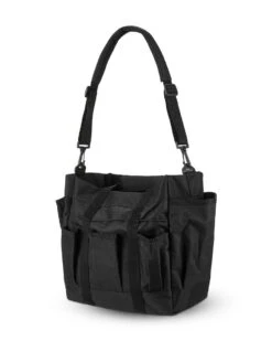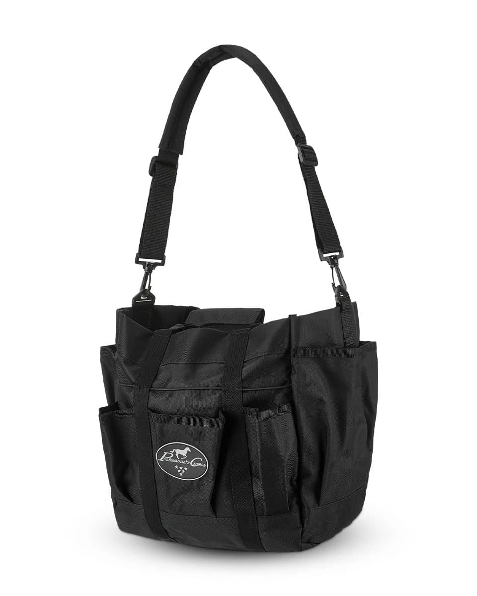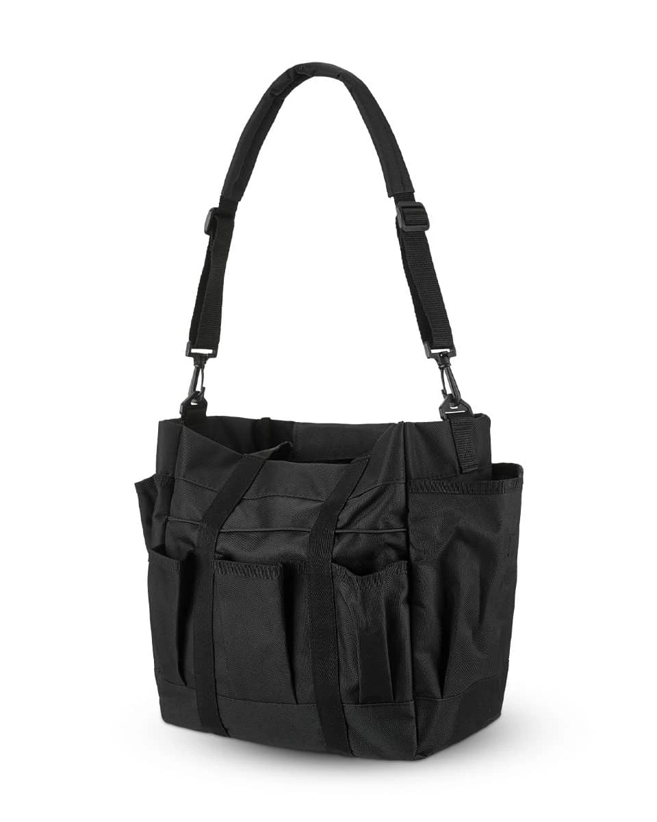 The Tack Tote from Professional’s Choice is the perfect way to keep all of your treats, small tack items, or grooming supplies organized in the stable or at an event. Featuring multiple pockets in numerous sizes, you’ll be able to keep all of your favorite items handy. Elastic, nylon bands and side pockets with hook and loop closure are great for taller or larger items. This Tack Tote also comes with a removable, padded shoulder strap.