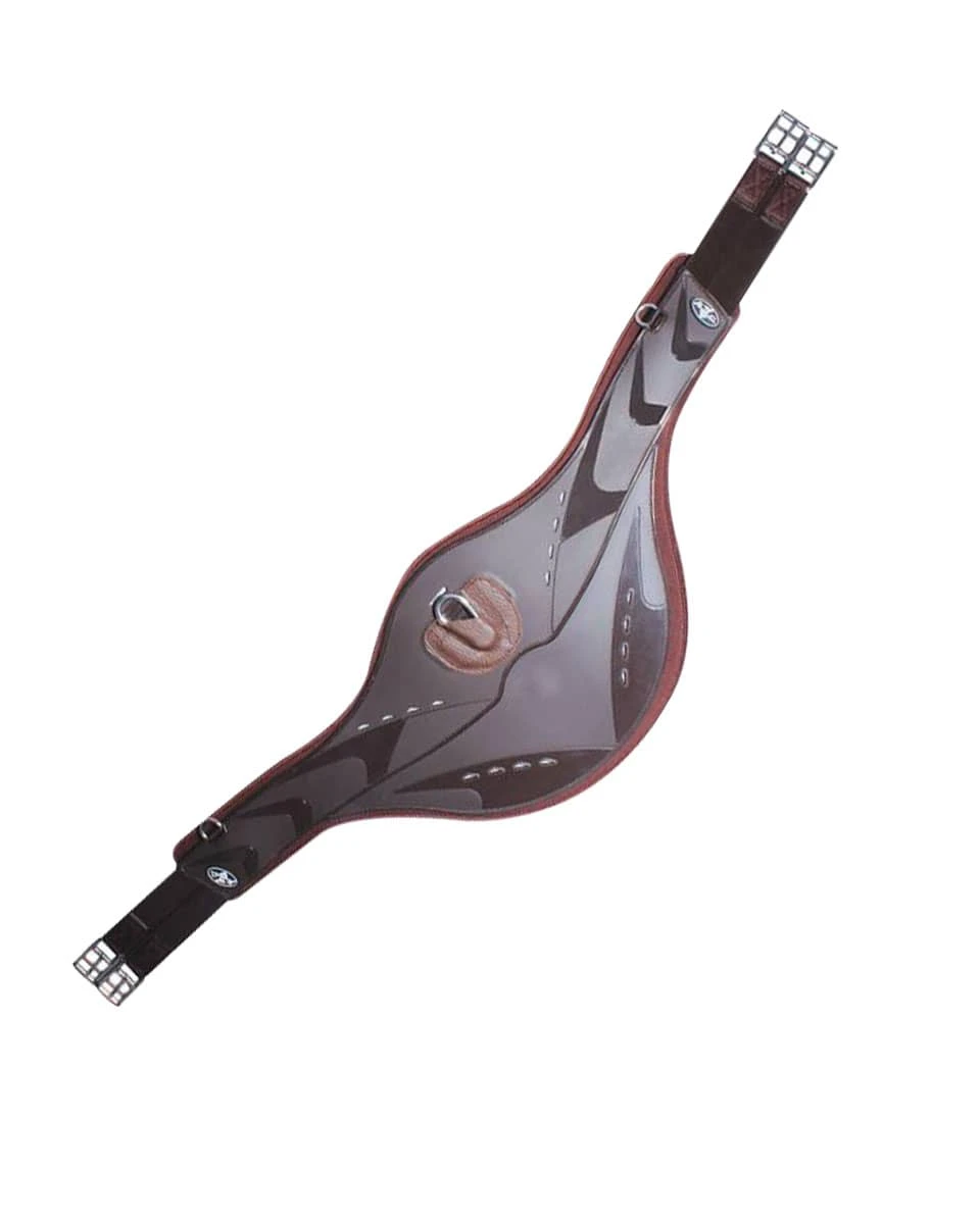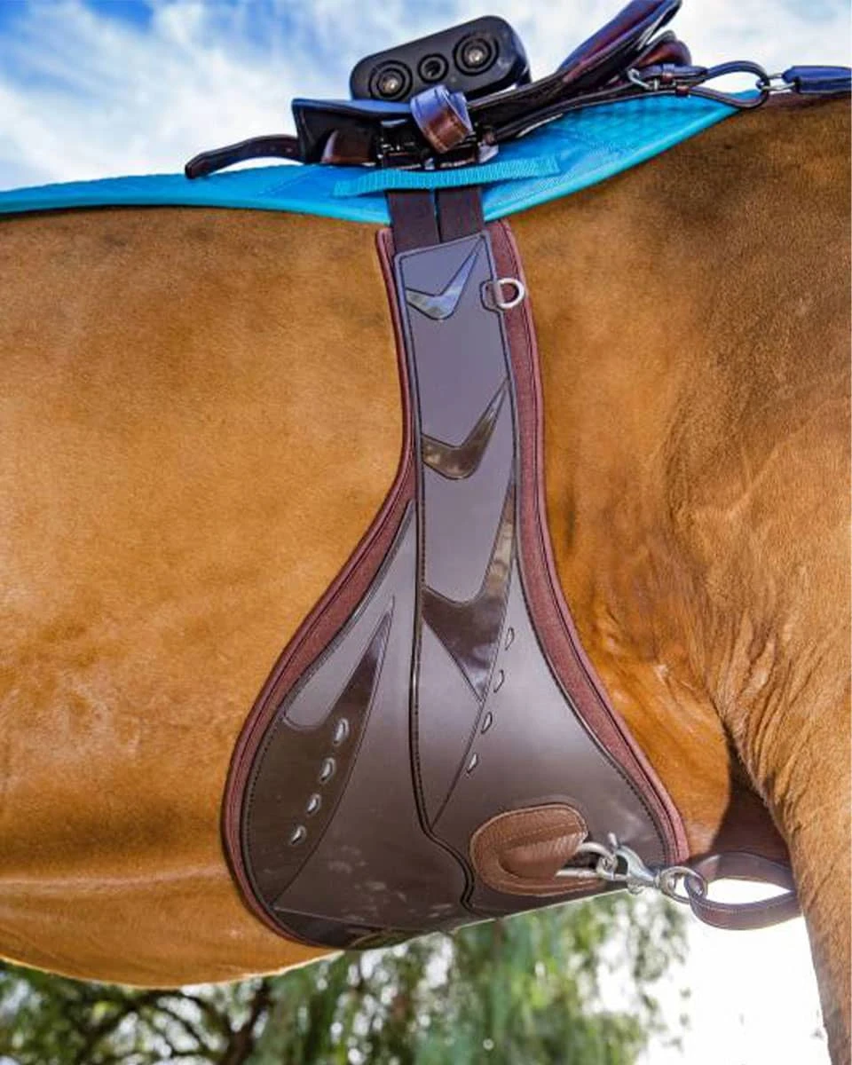- The belly guard shape protects the girth area from shoes and studs while jumping