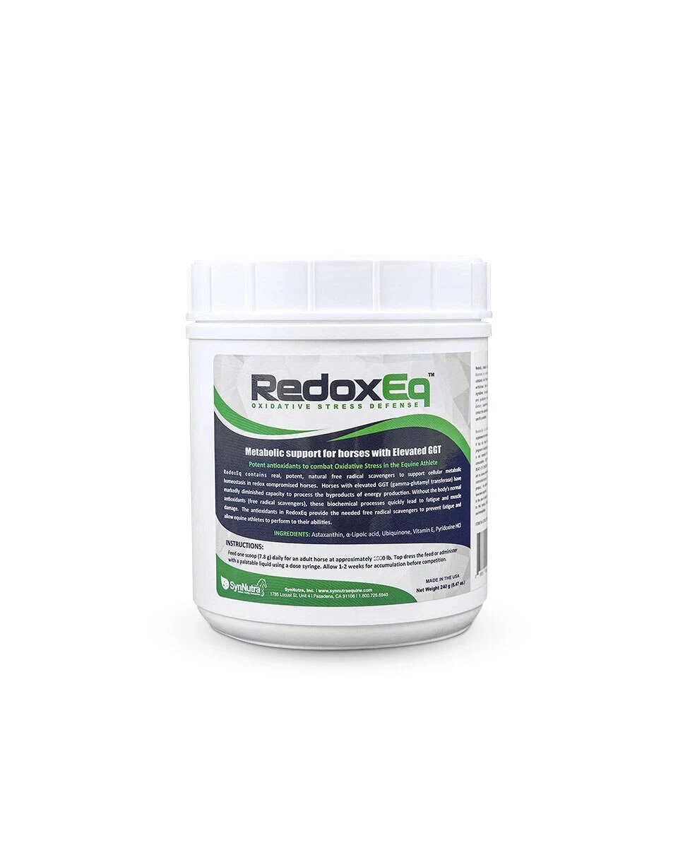 RedoxEq by SynNutra is a supplement formulated to support metabolic homeostasis in redox compromised horses. Horses with elevated GGT experience fatigue and muscle damage, RedoxEq provides the nutritional support to prevent fatigue and allow your horse to perform at their best.