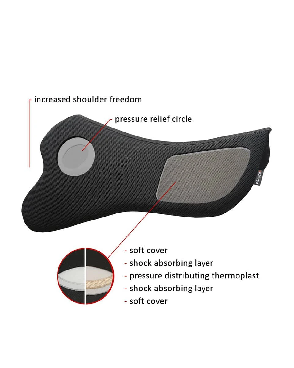 The Sedelogic S-Curve Breathable Half Saddle Pad is a lightweight re-moldable half pad for horses that have sensitive backs or kissing spines. Its re-moldable breathable thermoplastic provides the perfect custom fit every time. It’s suitable for all disciplines and a must-have half pad for those that ride a variety of horses.