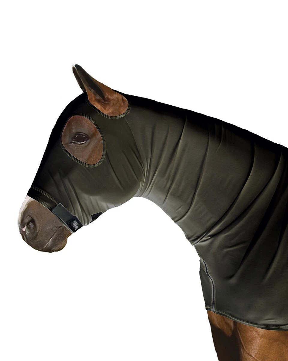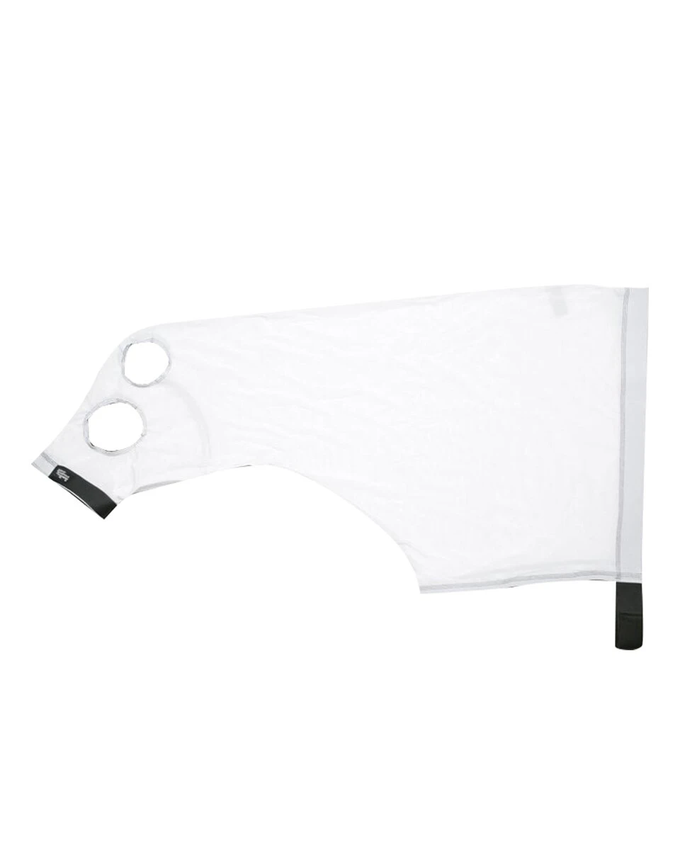 The Sleazy Sleepwear Mesh Hood from Windhorse, Inc. features a power mesh material that is breathable and comfortable for movement. Designed with a no-rub, adjustable fleece noseband, this Sleazy Hood keeps your horse protected for the night before competition. In addition, this product is also great for mane training and protecting from blanket chafing! Available in black or white.