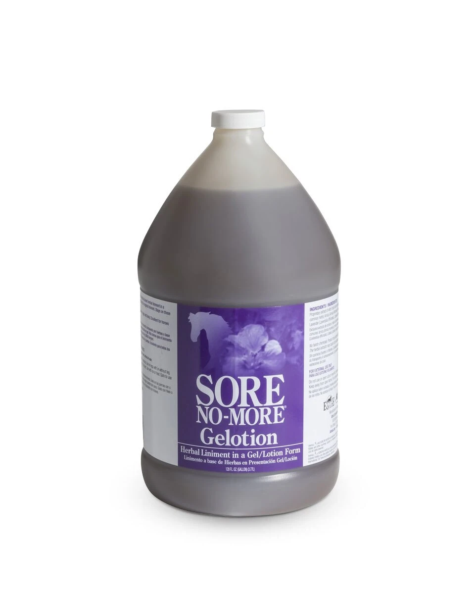 Sore No-More Gelotion is a herbal liniment made of Arnica and other herbs in a Witch Hazel base that contains no harsh chemicals making it safe for your horse. Since it contains no oils, it may be used as a massage liniment prior to exercise. Great for horses that may be sensitive to chemically based liniments.