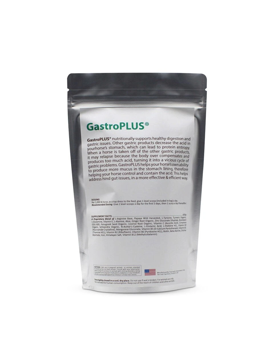 GastroPLUS by T.H.E. Equine Edge is a feed-through supplement created to support healthy digestion and gastric issues in horses.