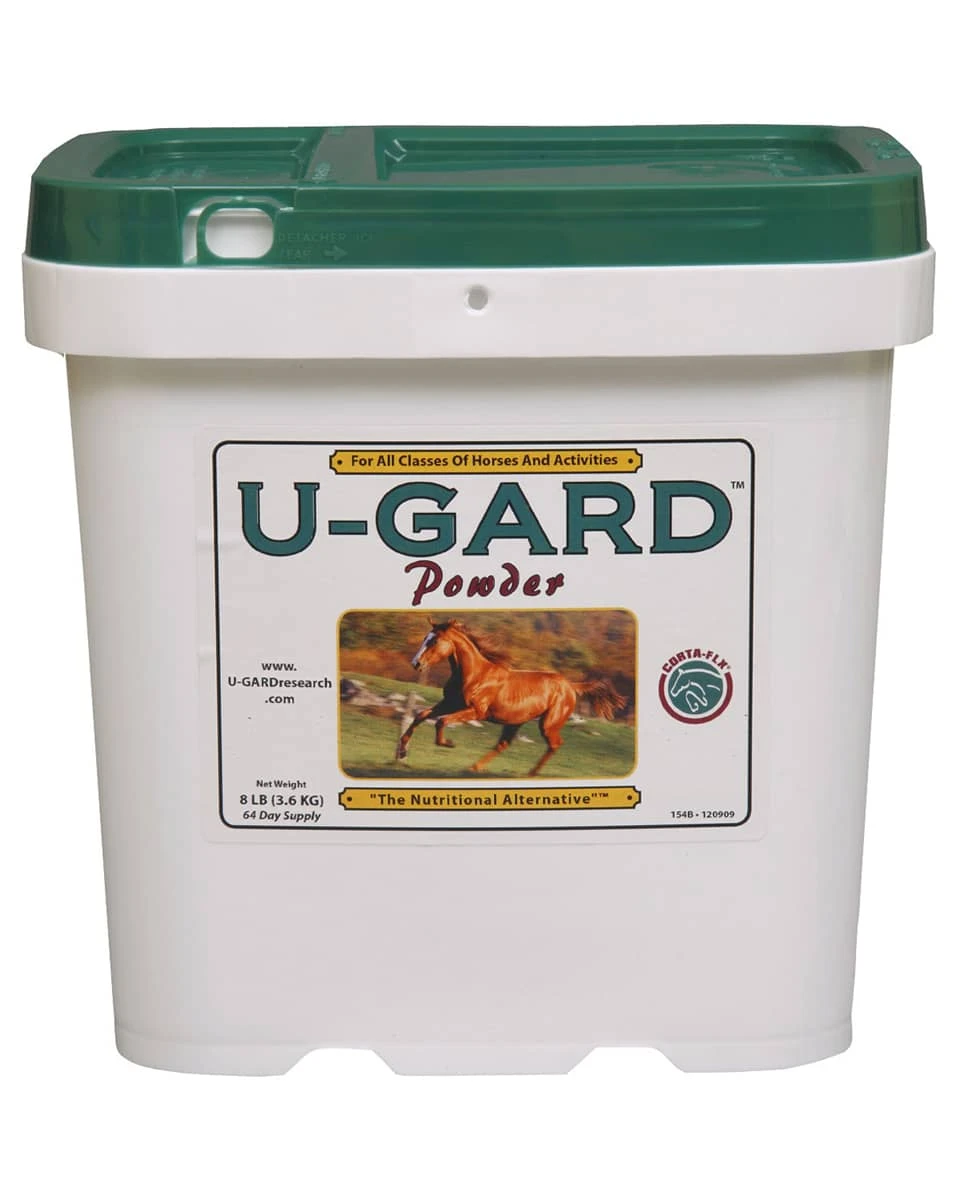 U-Gard Powder for horses soothes and coats the gastrointestinal tract. Super-concentrated formula allows you to use one product instead of three. U-Gard Powder contains calcium carbonate, magnesium hydroxide, methylcellulose, silicone dioxide, kaolin, pectin and more. Available in 4 lb or 8 lb size.