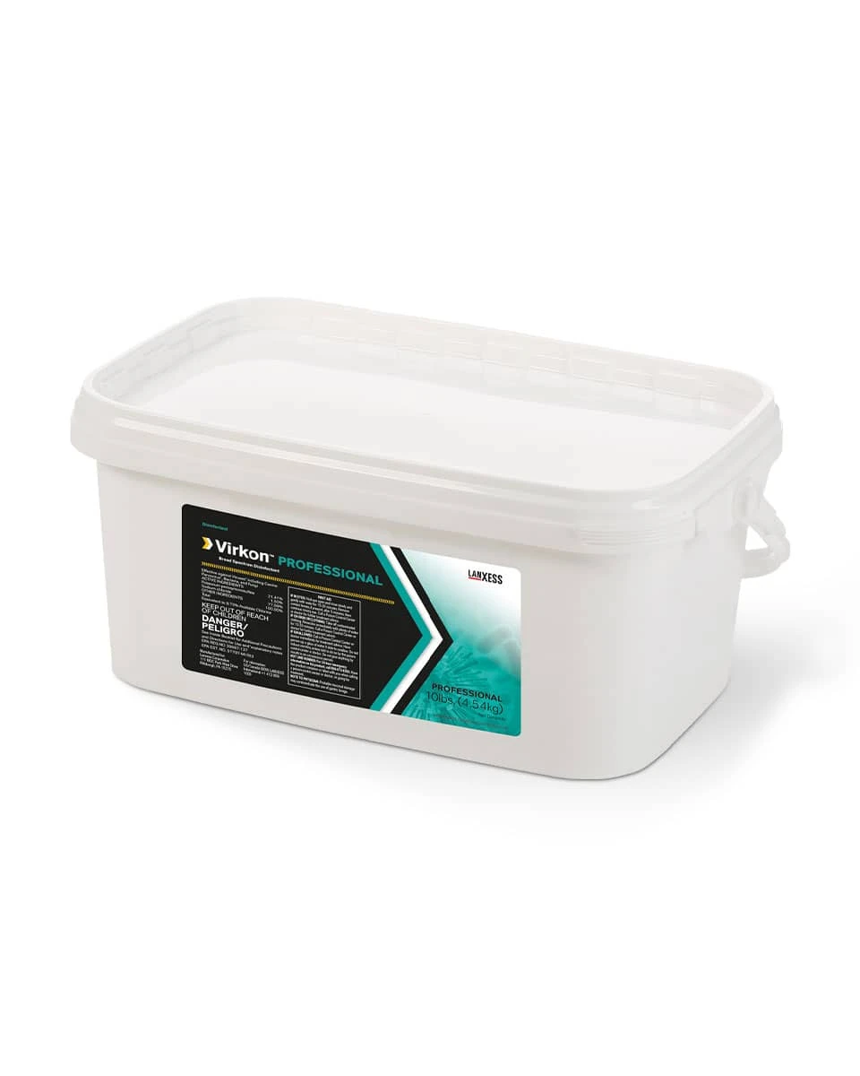 Virkon Professional Disinfectant from Vetoquinol is a daily disinfectant that is effective against a broad range of bacteria and viruses including Parvovirus, Coronaviruses, and more. The combination of ingredients works together with multiple mechanisms to target different parts of the microorganism, resulting in the complete destroyal and effective removal of biofilms. Virkon Professional can be used on a variety of equipment and surfaces to clean and disinfect in one easy step. It is still effective when used in hard water at a low temperature, making this great for use in barns and boarding facilities, shelters, vet hospitals, and more. It is available in powder or tablet form with a pleasant citrus scent.