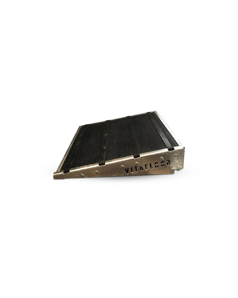 The Vitafloor Ramp System helps your horse walk on and off of the Vitafloor VME or VME Advanced therapeutic vibrating plate. These ramps are not required to operate your Vitafloor therapy plate, but you may find they make it faster and easier for your horses to assimilate with your new therapy equipment. Ramps are made from steel and wood and feature a mat with special grip technology to keep make sure your horse never slips. They measure 35″ x 29″ x 6″ and are sold as a set of 2 (of for the front and one for the back of the Vitafloor).