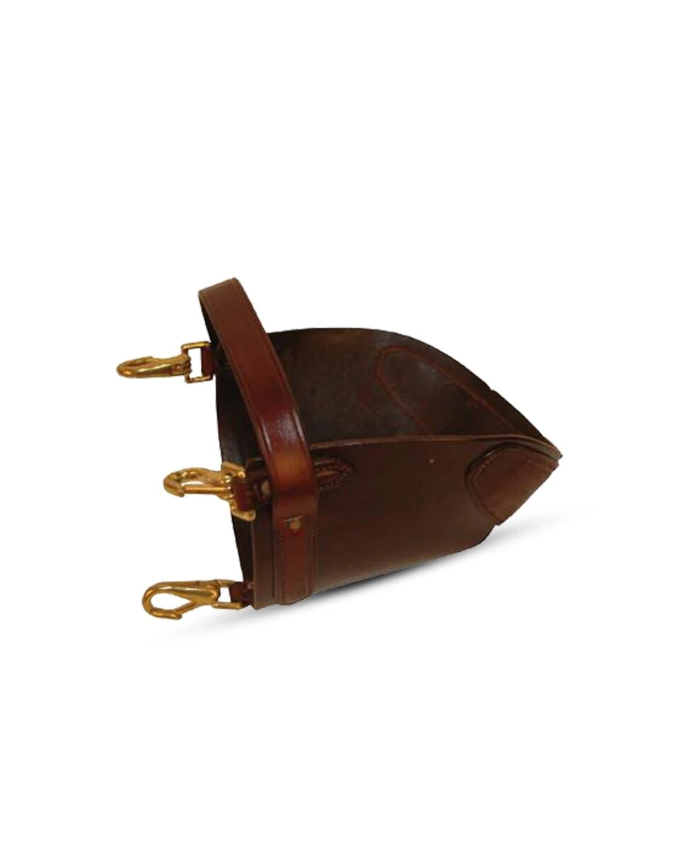 The Leather Bib from Walsh features the classic Walsh Leather in a bib designed to prevent your horse from chewing on blankets and wraps. With 3 brass hardware clips that attach to the throat and cheek pieces of your horse’s halter, the Leather Bib will save you time and money from re-wrapping bandages or purchasing new blankets. High-quality and hand-stitched.