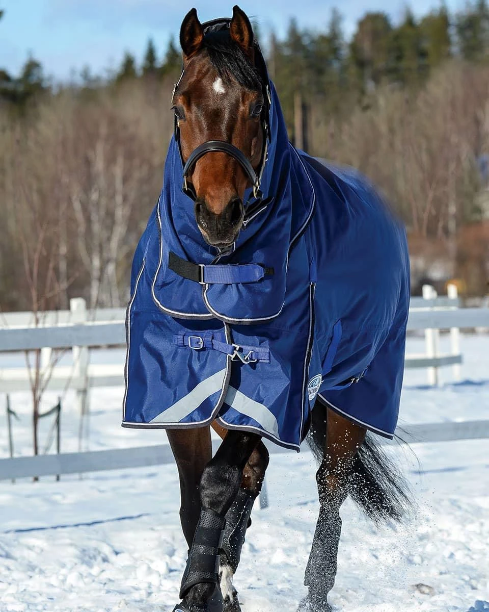 The Comfitec Ultra Tough Detach-A-Neck Medium from WeatherBeeta features a heavy weather turnout with a memory foam wither-pad for added relief and 1680 denier ballistic nylon outer shell with Teflon coating. Made with a durable 1680D shell and 220g fill, this waterproof blanket has breathable fabric and a detachable neckpiece. The quick clip closure keeps your horse safely covered while making blanketing simple. With traditional side gussets, cupped shoulder darts, and a large tail flap, moving freely around the pasture will be your horse’s priority. Even the leg straps are adjustable and removable!