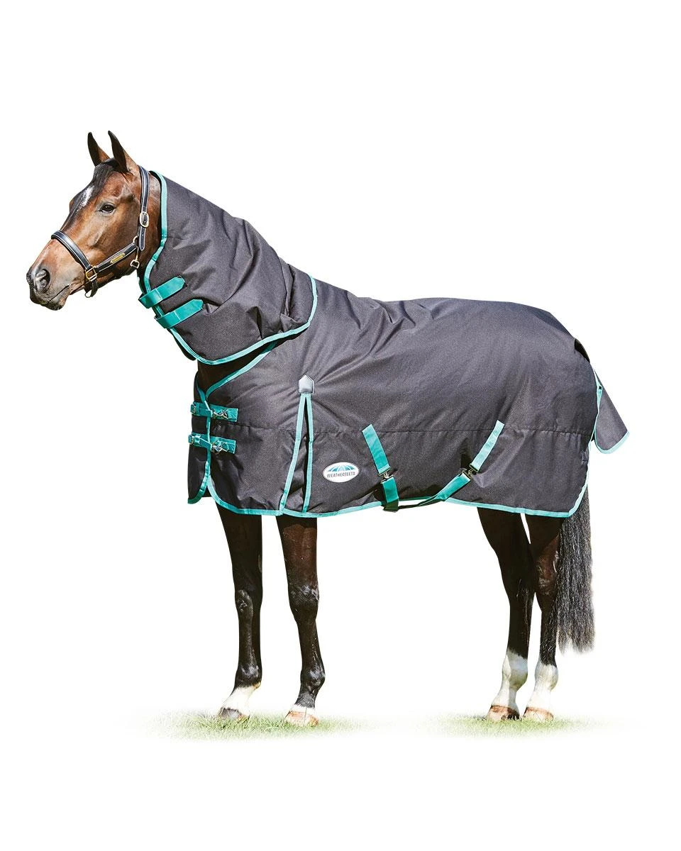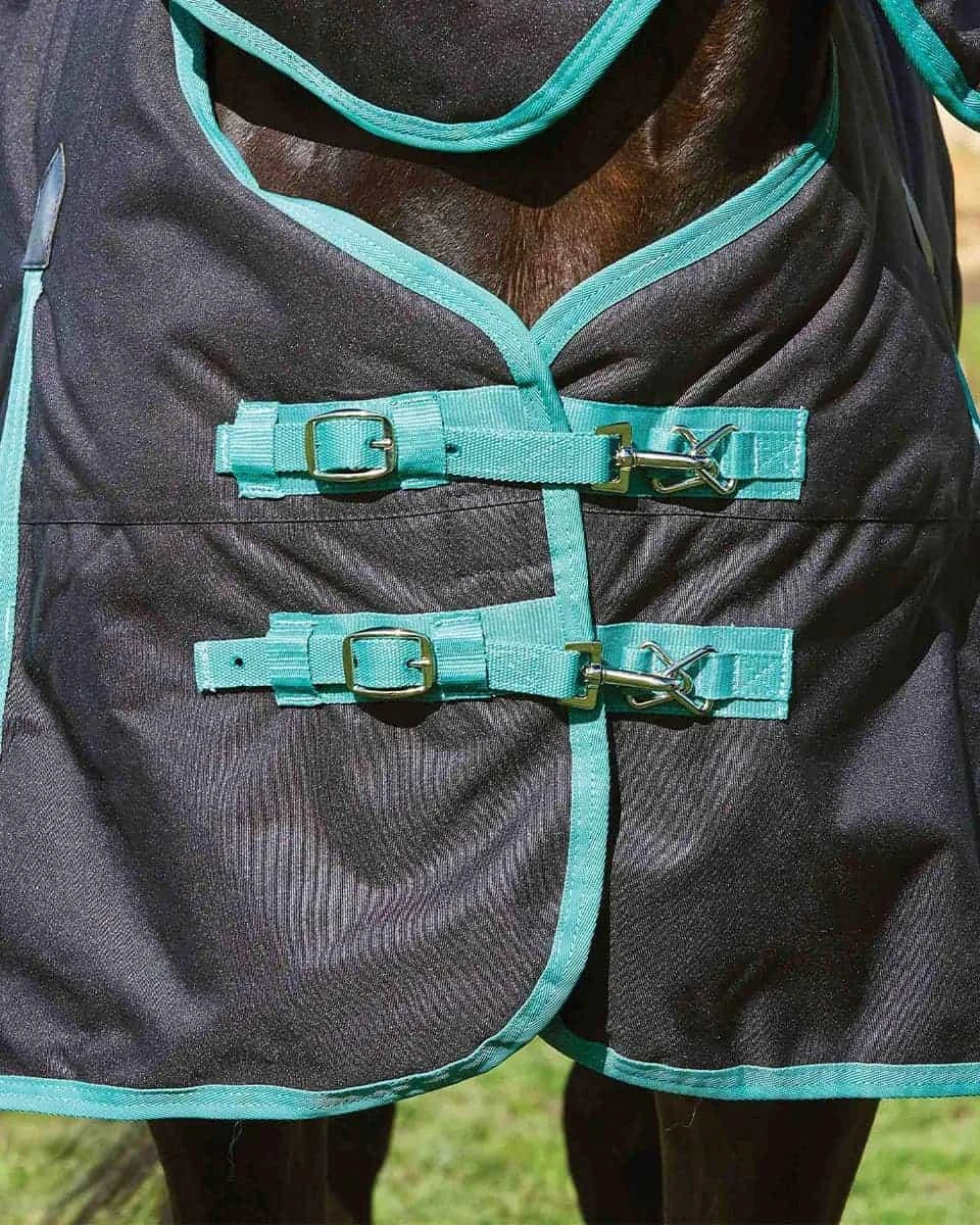 Weatherbeeta’s Green-Tec Heavy Turnout with Detachable Neck is waterproof, breathable and offers maximum protection and adjustability for every horse, all while saving over 340 plastic bottles from ending up in landfills and oceans. The 360g polyfill is insulating and has a strong 150 denier diamond weave lining the Weatherbeeta PCR fabric. PCR (post consumer recyclable plastic) also uses 50% less energy to make each blanket, so you can give back to the environment while protecting your horse from it.