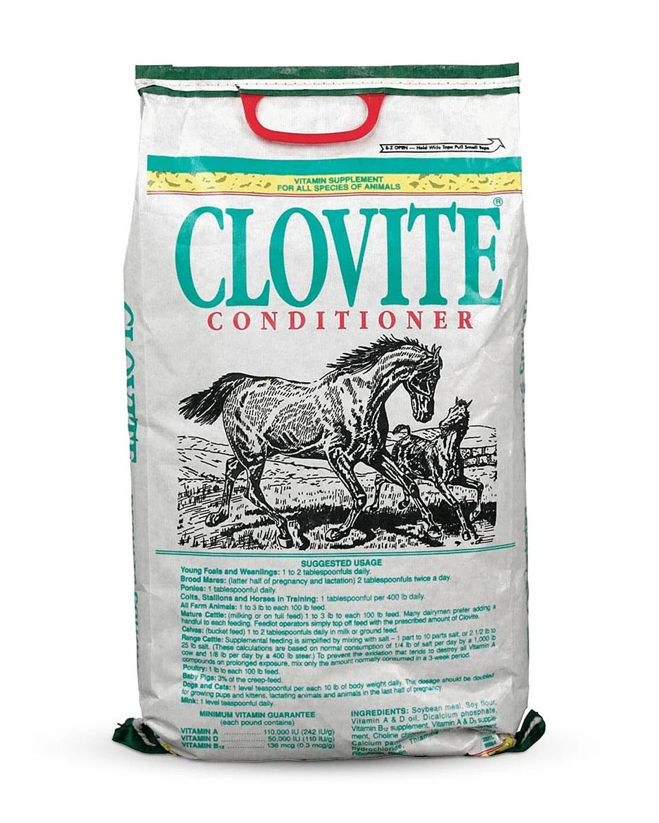 Clovite Conditioner by Zoetis is a Vitamin supplement conditioner that helps with the immune, respiratory, reproductive, and nervous systems in horses. This supplement is high in Vitamin A, D, and B12 and promotes a healthy body condition no matter your horse’s age. This supplement is great for all species of animals such as foals, weanlings, brood mares, stallions, colts, and performance horses.